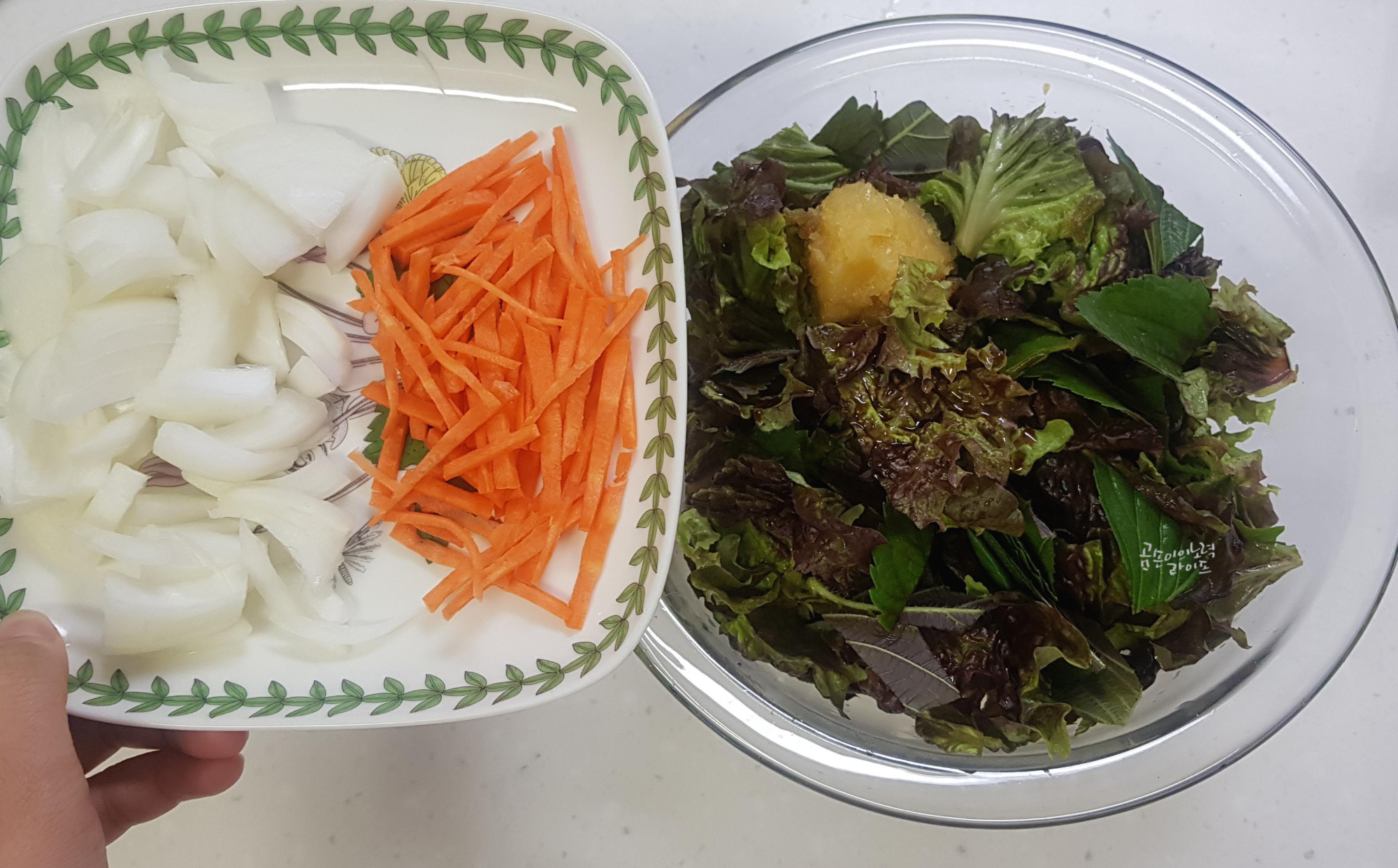 깻잎 7장(생략 가능)당근 조금