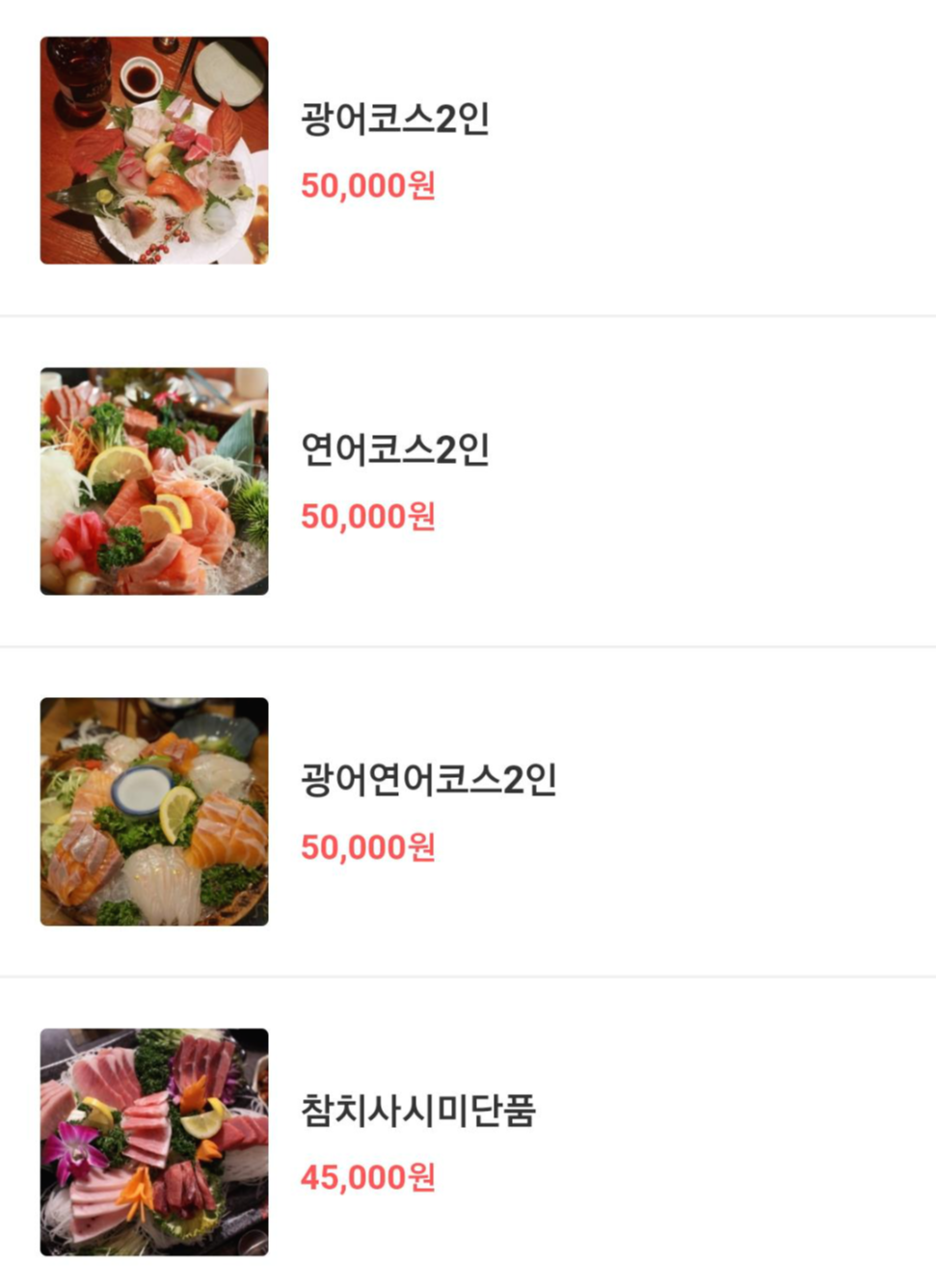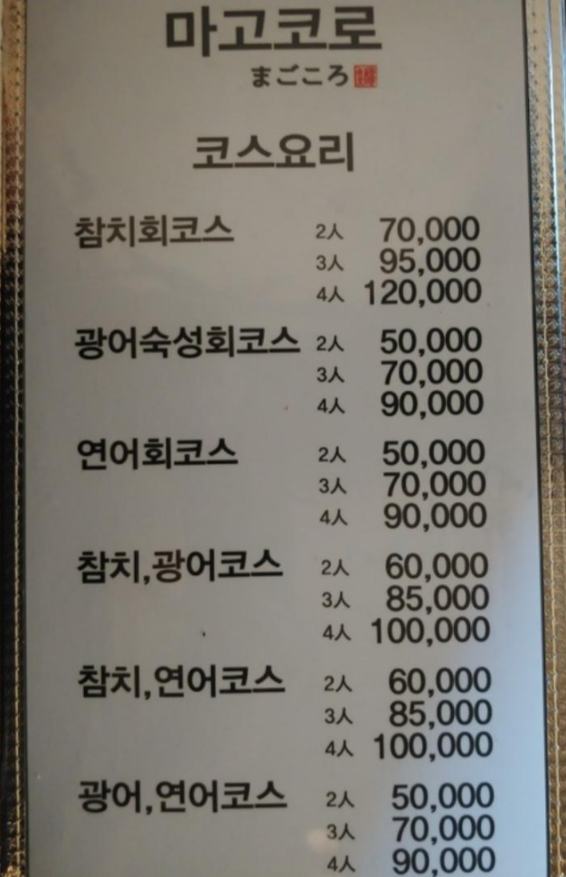 참치 코스요리는 4인 12만 원이에요.
