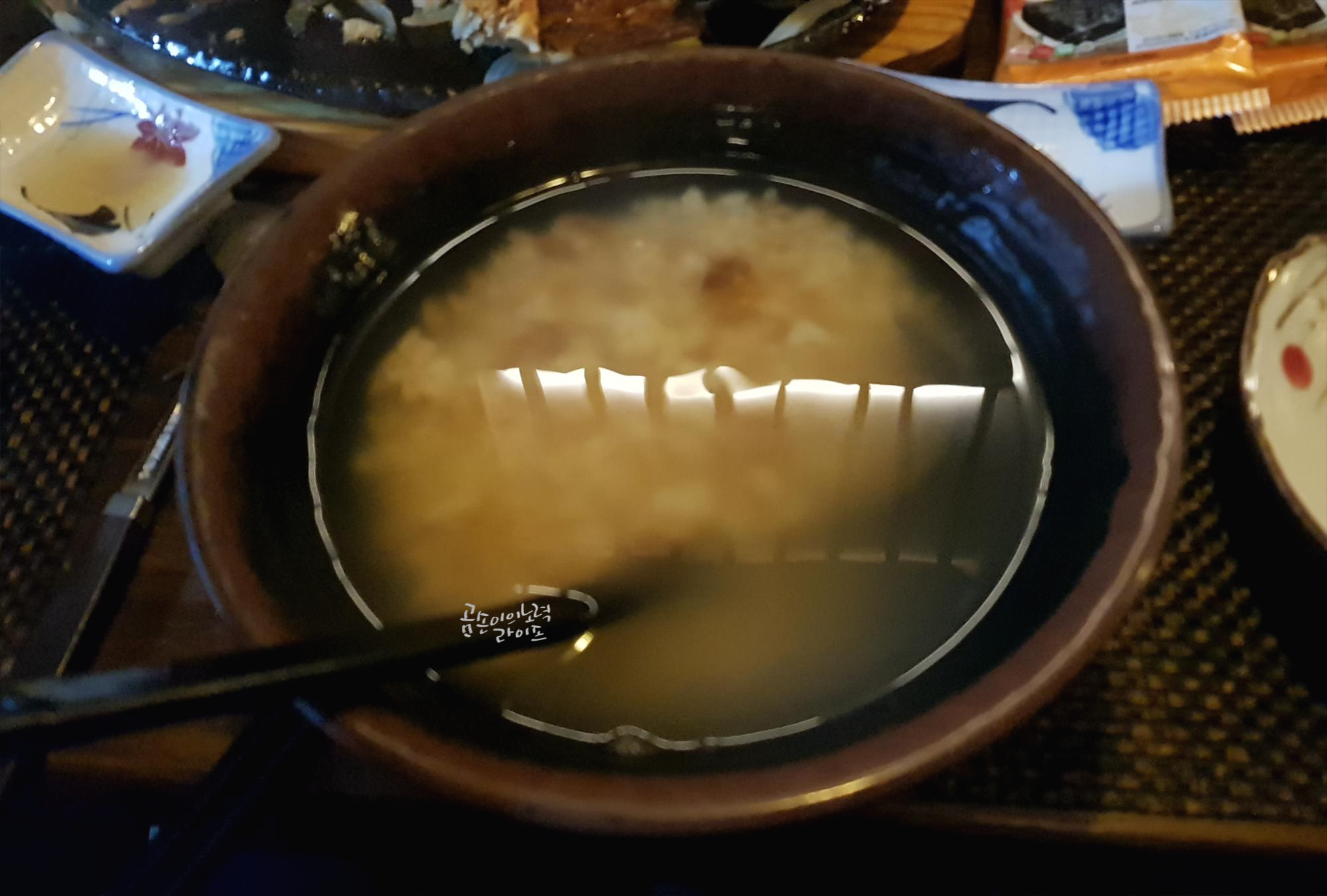 참치를 모두 먹으면 매운탕과 누룽지가 나와요.