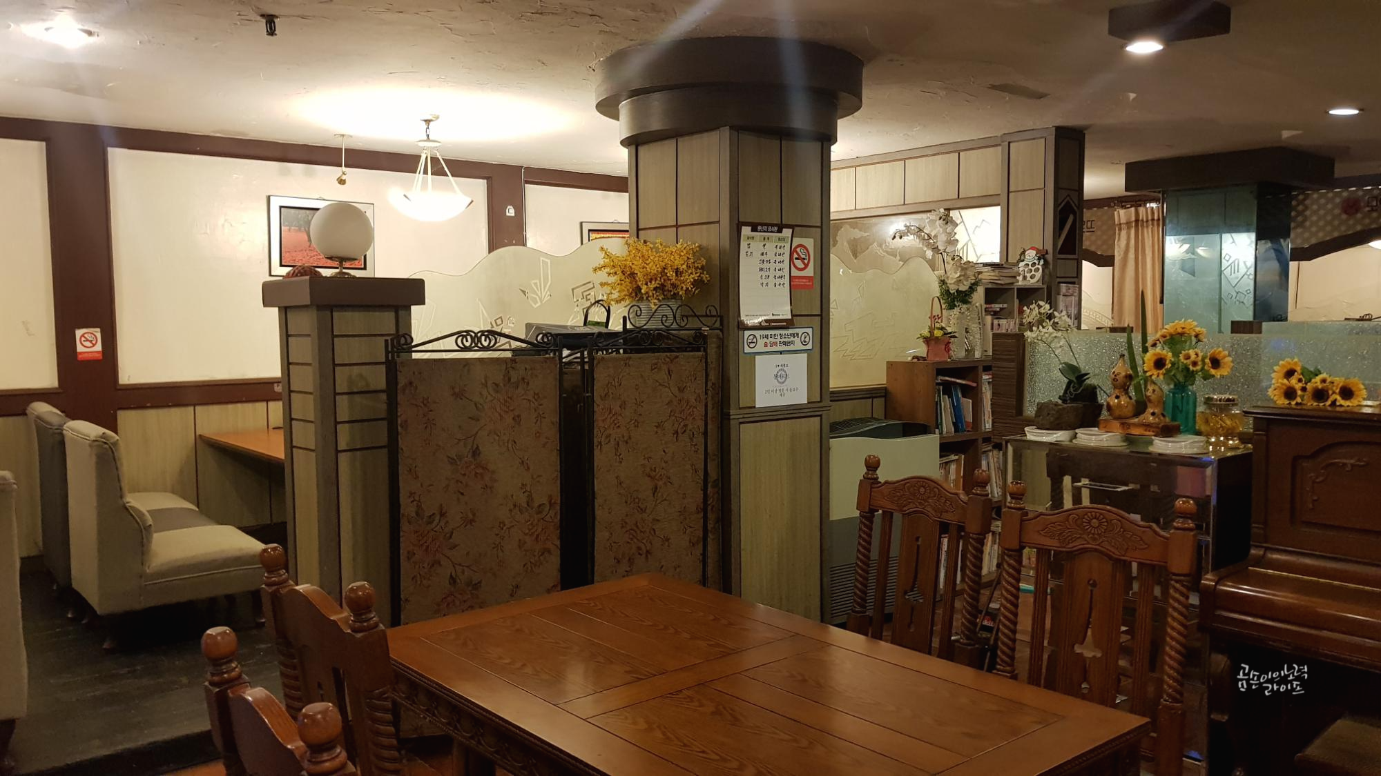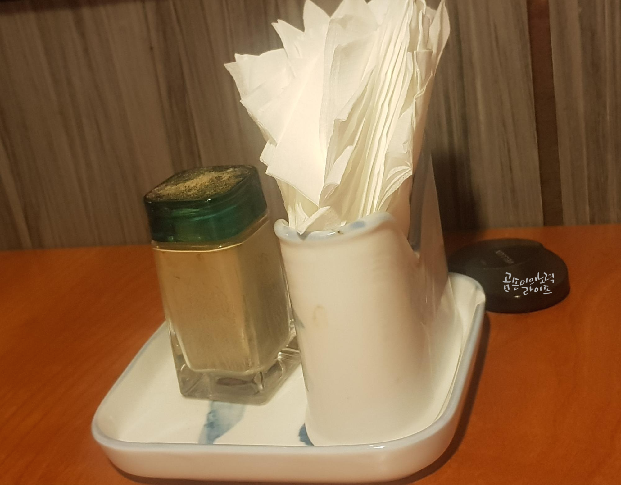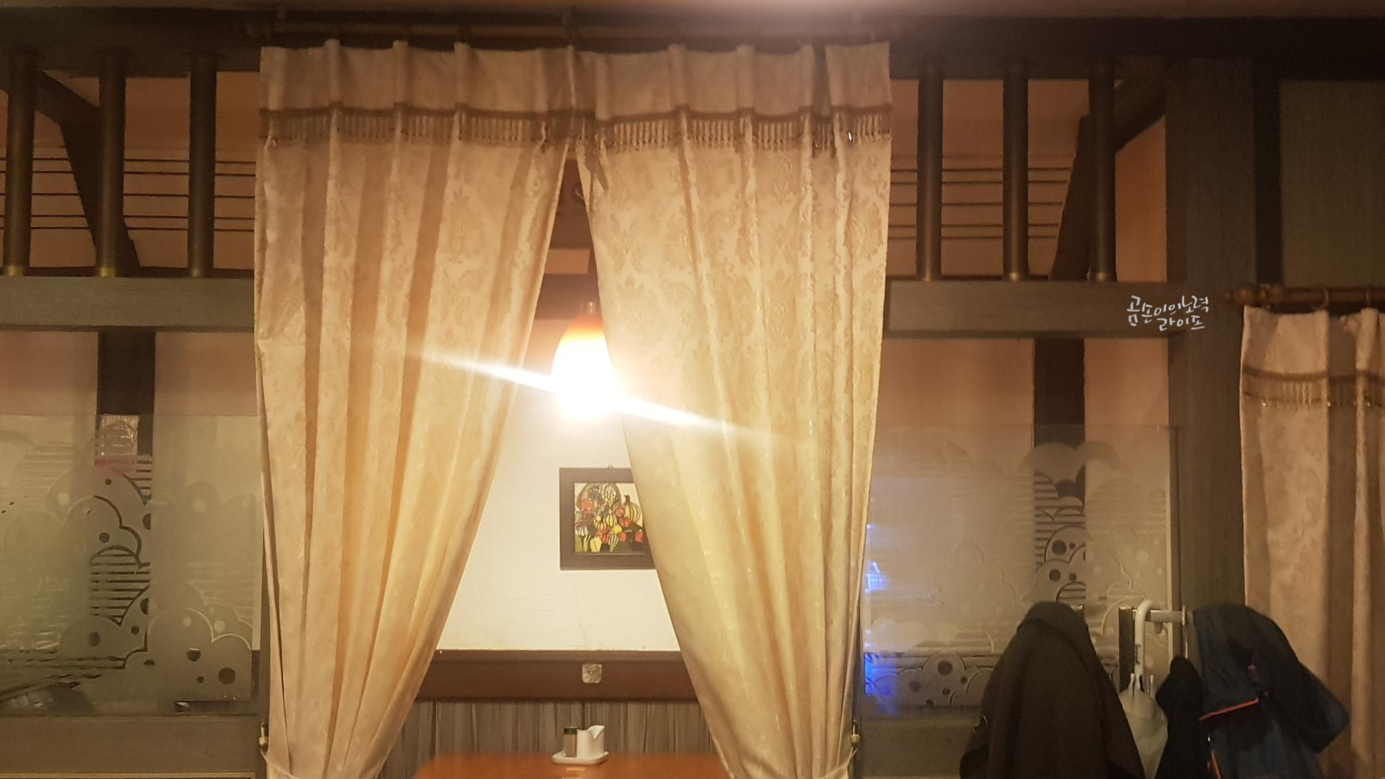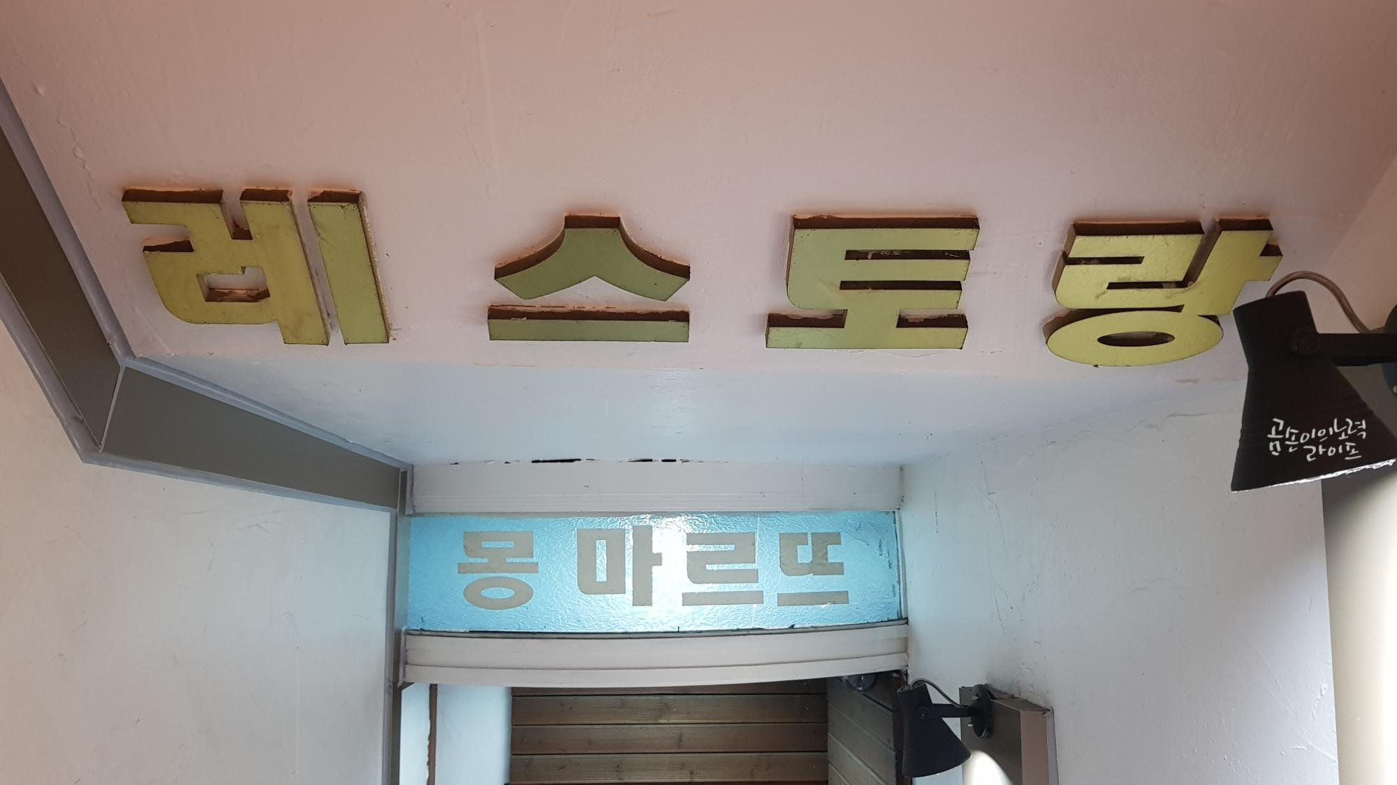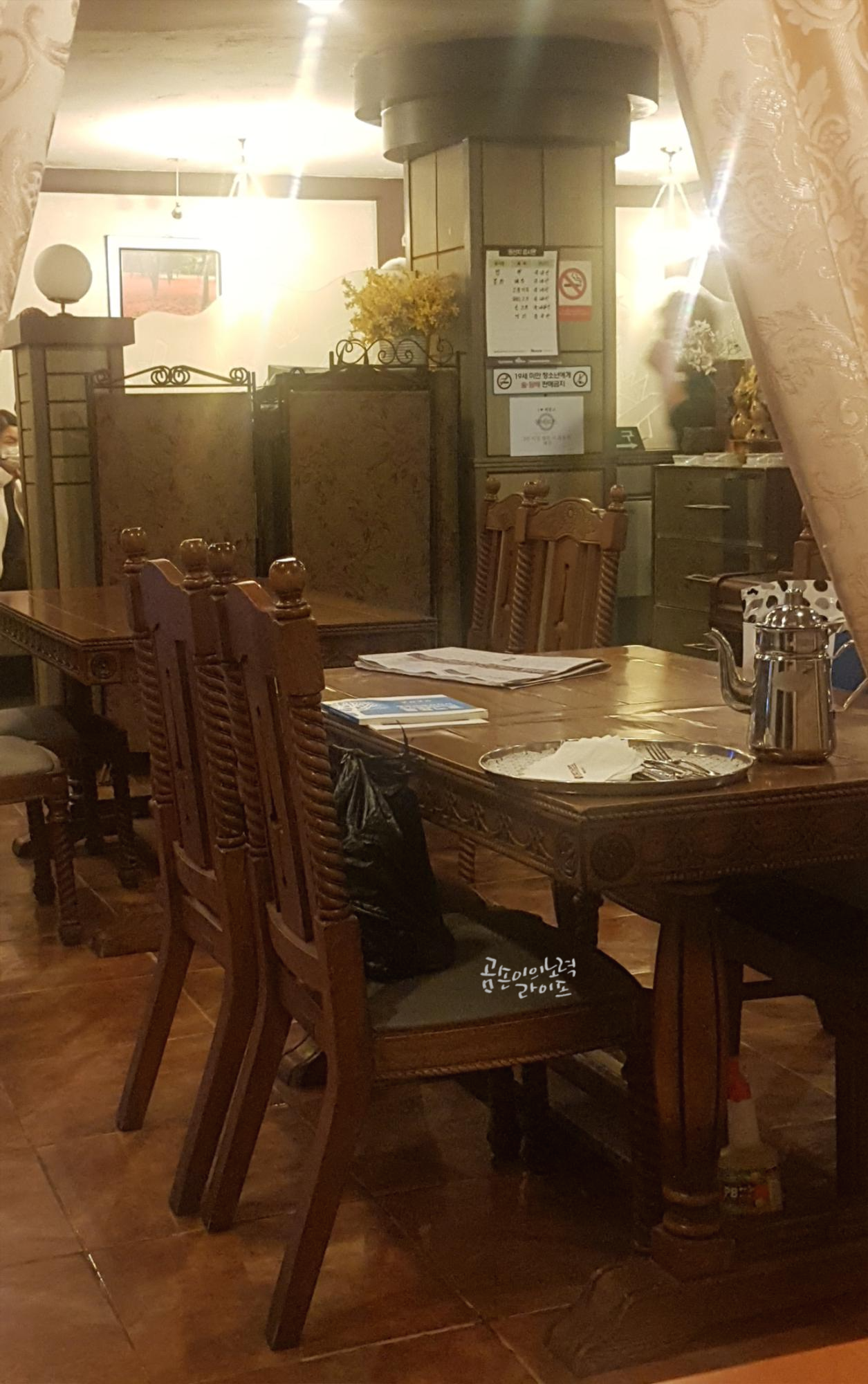 모든 게 옛날식인데 딱하나 세련된 느낌의 외부 작은 간판이 눈에 띄네요😊