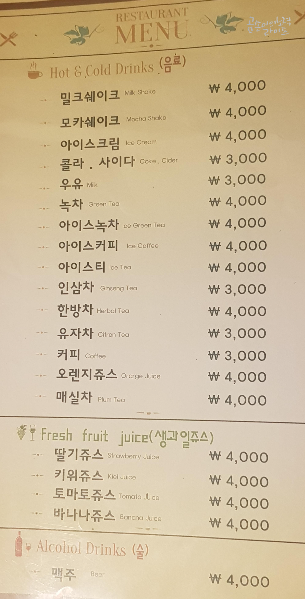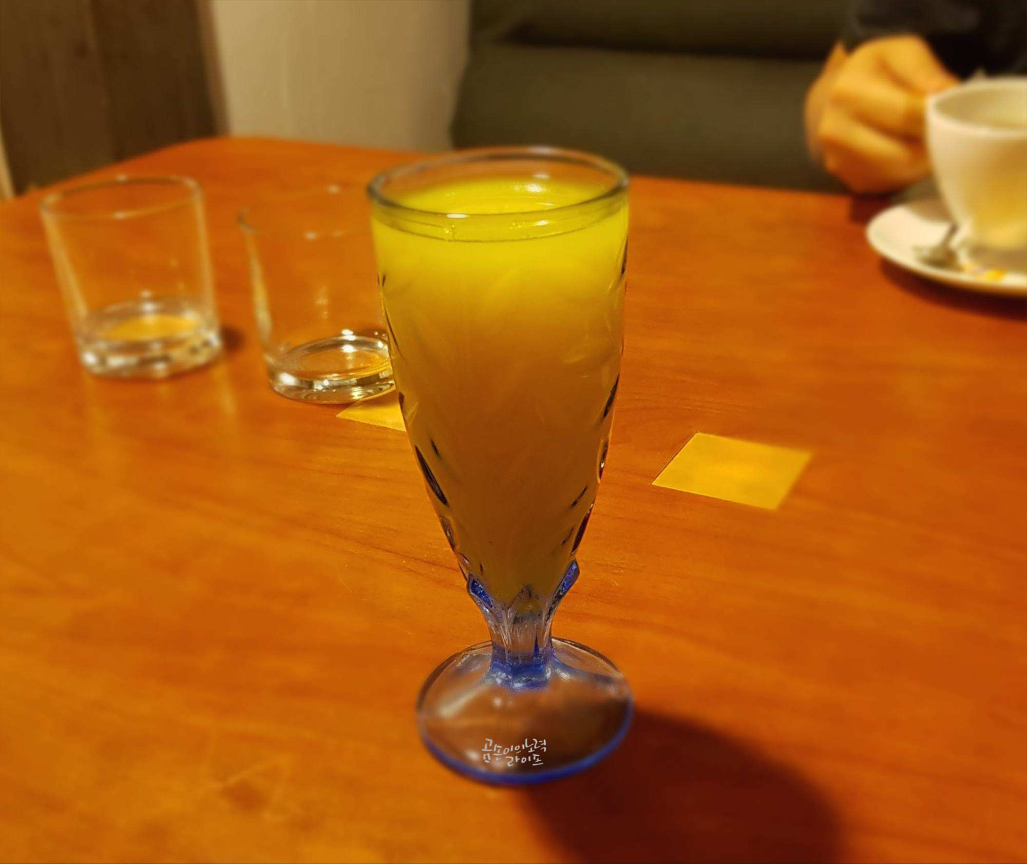 신랑은 커피, 저는 주스를 시켰어요.