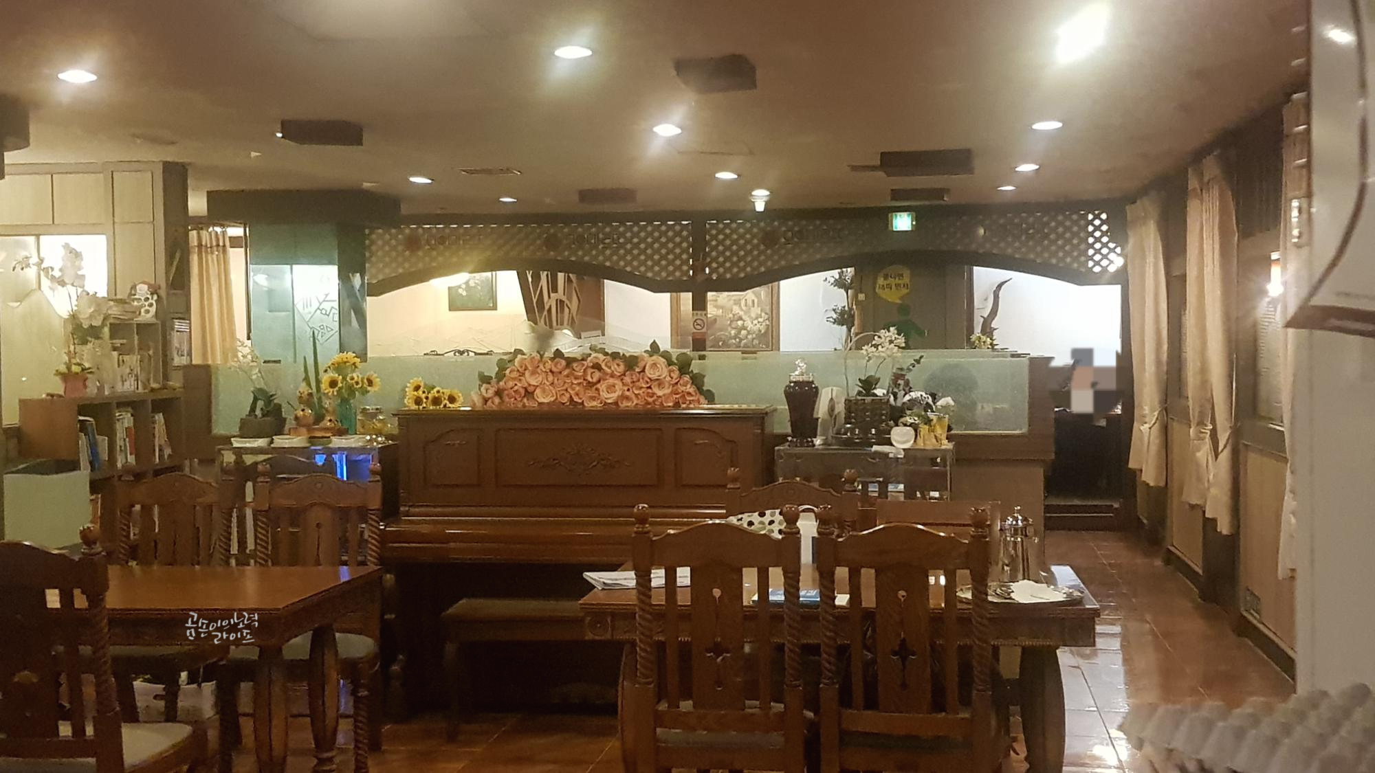 홀 한가운데 피아노와 옛날 가구들이 시간여행 온 것 같은 기분이 들게 하더라고요.