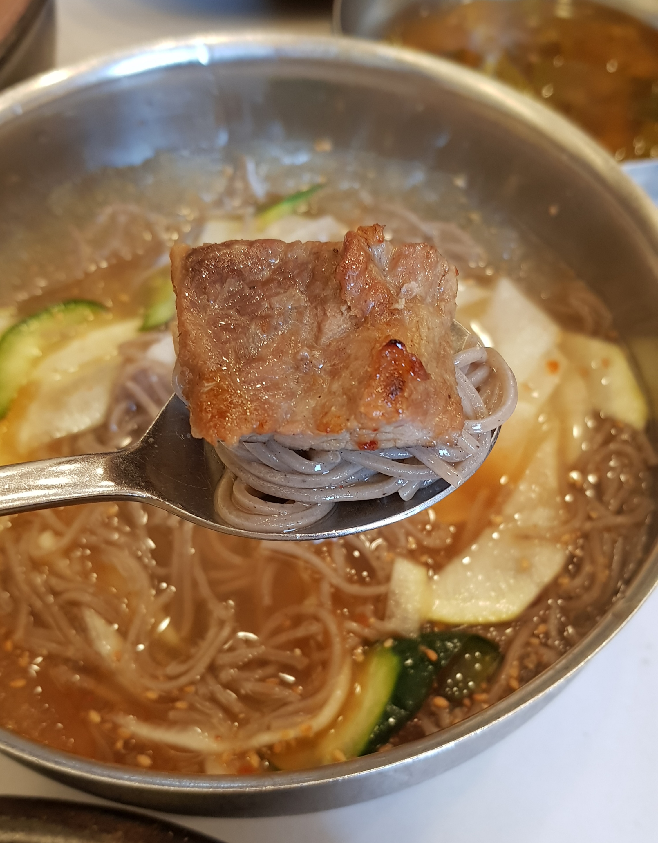 냉면을 고기랑 같이 주문하려고 했는데 나중에 다시 주문하라고 하더라고요.