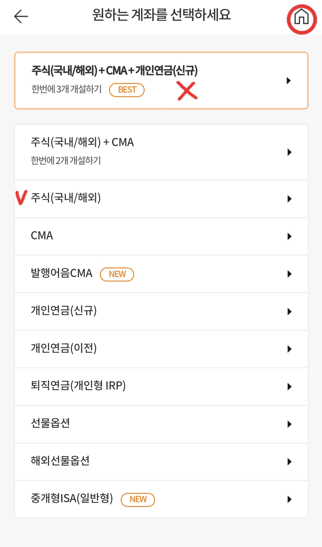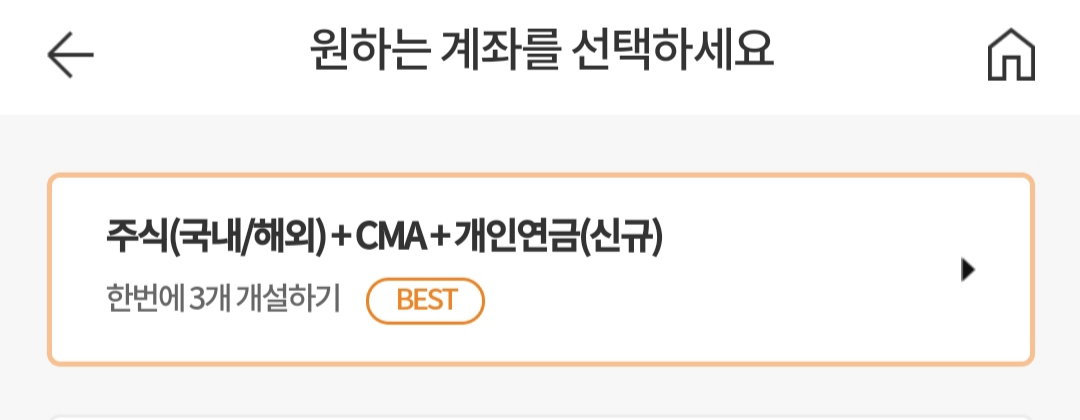 처음에는 주식, CMA, 개인연금 계좌 이렇게 세 가지를 한 번에 개설하는 창만 나와요.