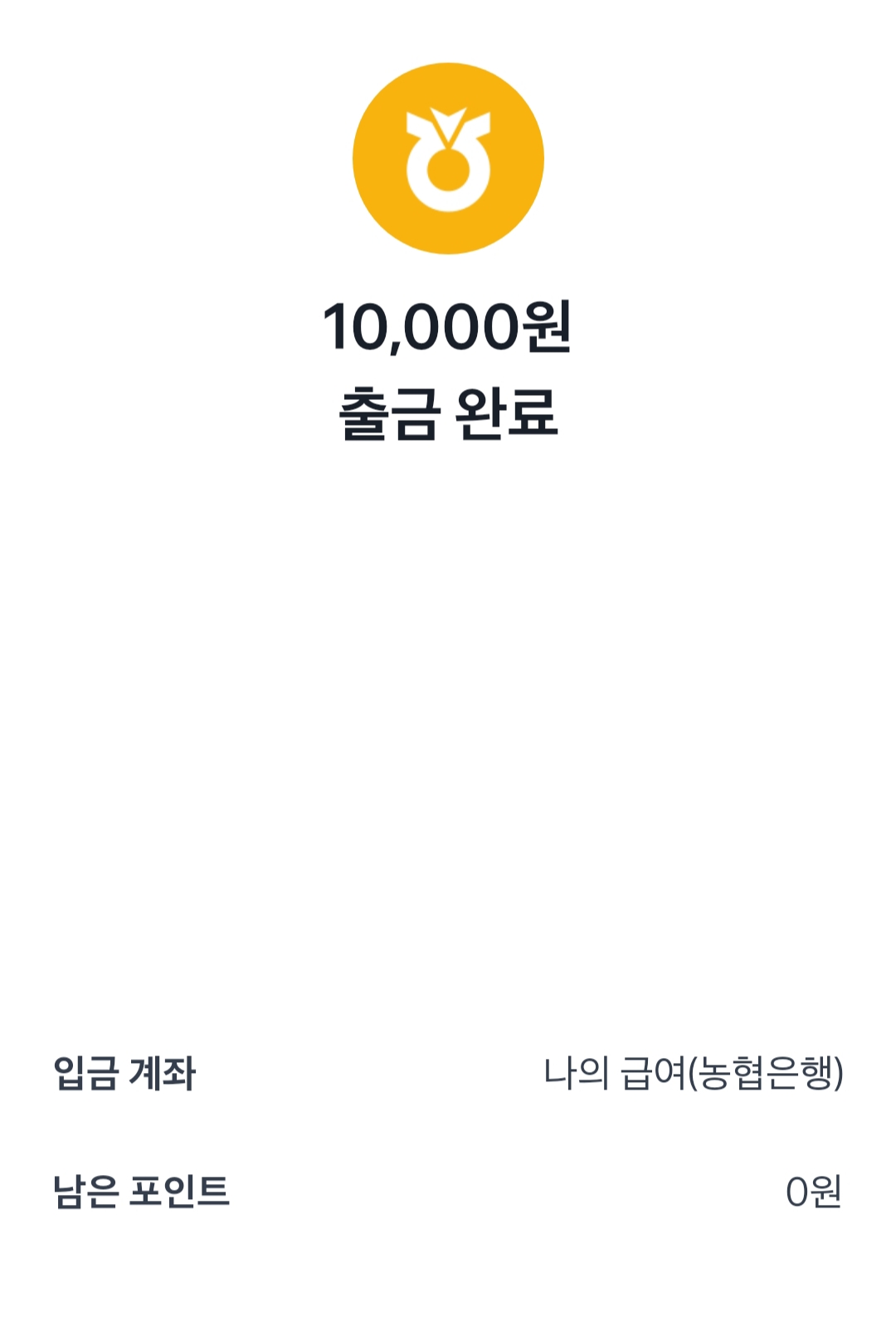 출금 버튼을 눌러 아주 쉽게 포인트를 현금으로 출금받았습니다!