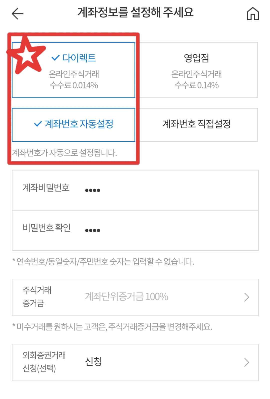 또 하나 중요한 것, 다이렉트 계좌 개설로 꼭 선택해 주어야 해요.