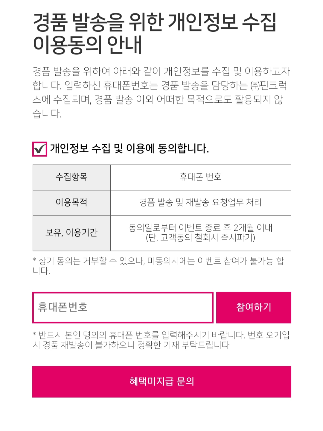 문자 인증을 통해 자신이 이벤트에 참여할 수 있는지 확인해요.