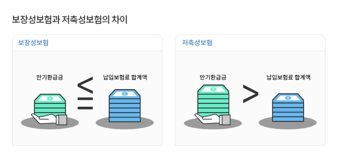 만기 시 돌려받을 수 있는 돈이 지금까지 낸 보험료 총액보다 적거나 같은 것을 보장성 보험이라고 합니다.