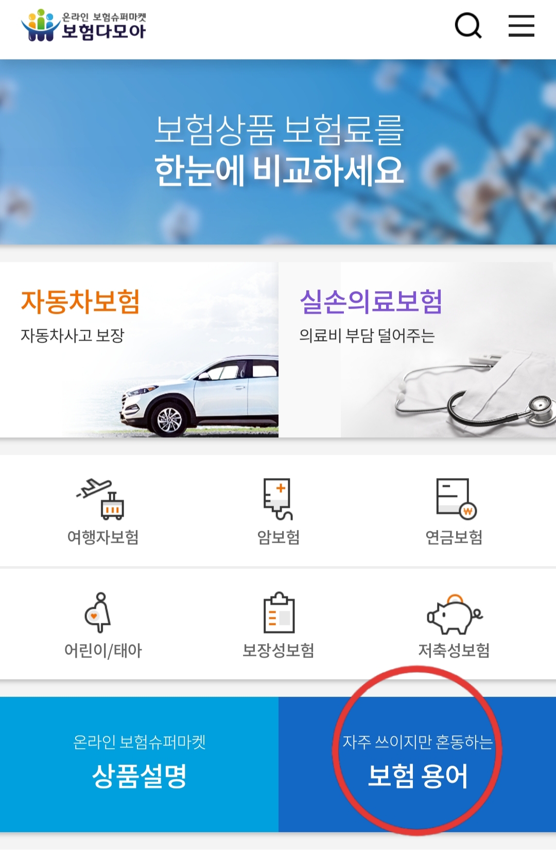 그밖에 다른 보험용어들도 쉽게 설명되어 있으니 보험다모아 사이트를 통해 공부해 보시기 바랍니다.