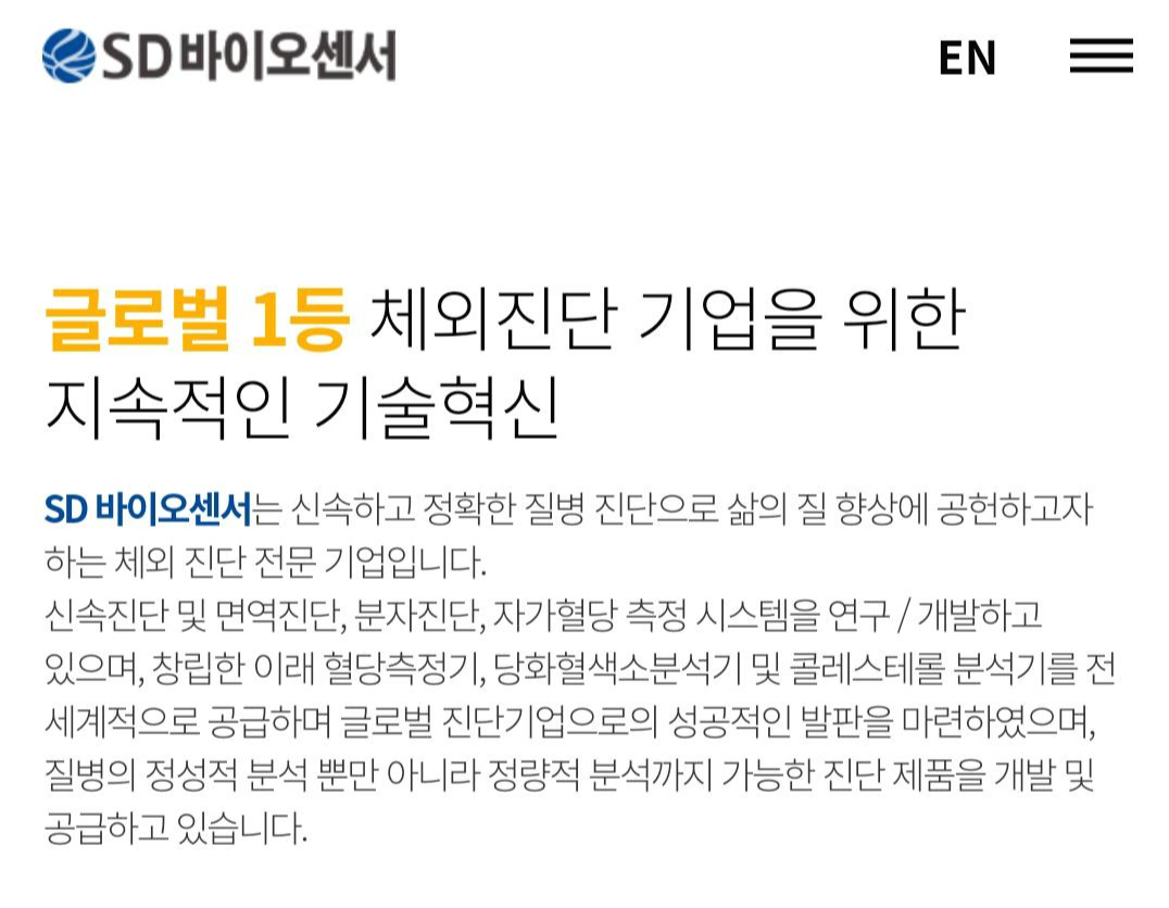 SD바이오센서는 의료, 진단에 핵심을 두고 있는 기업입니다.