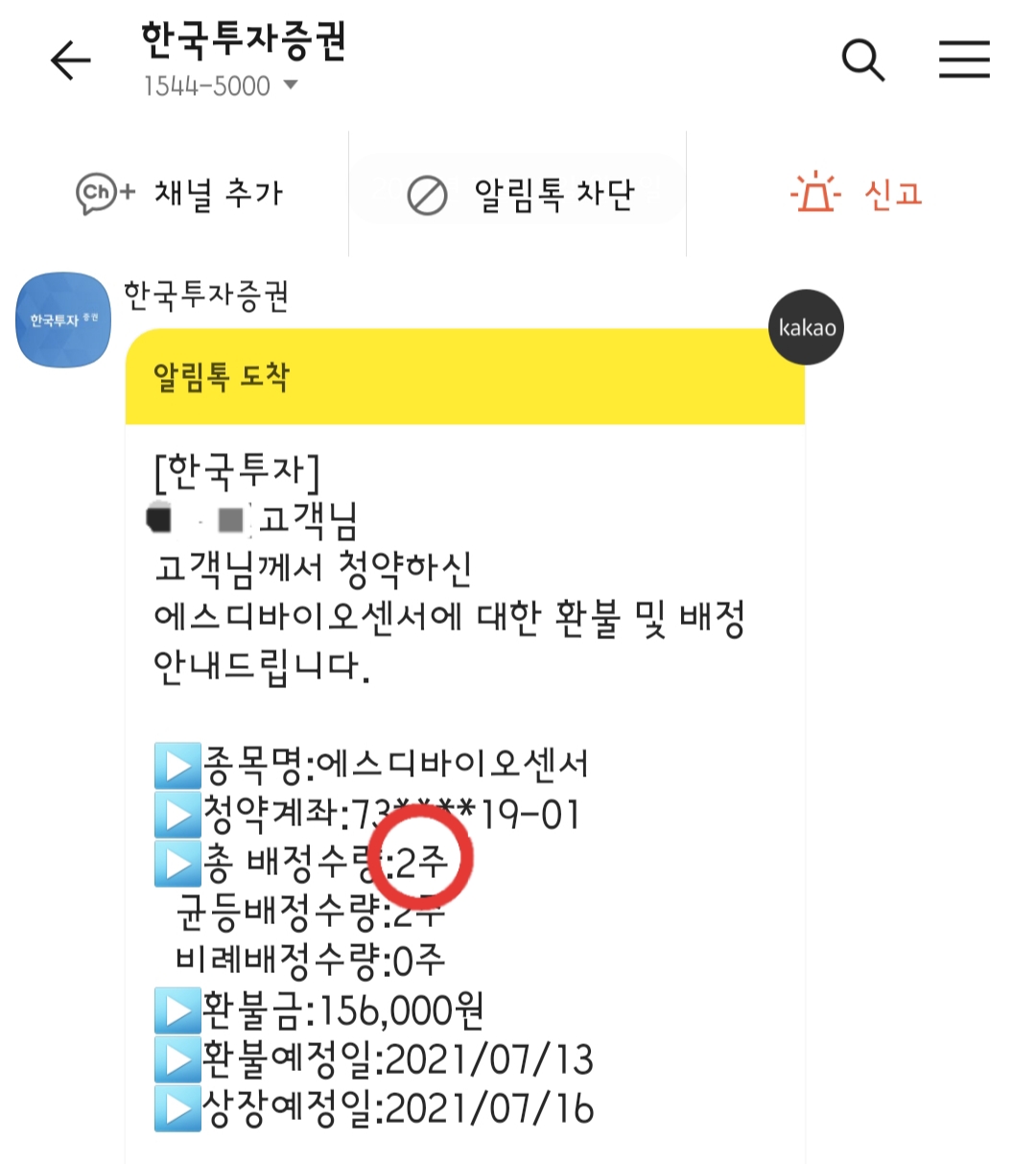 NH 빼고 모두 알림 톡이 와서 내가 몇 개의 주식을 배정받았는지쉽게 알 수 있었어요.
