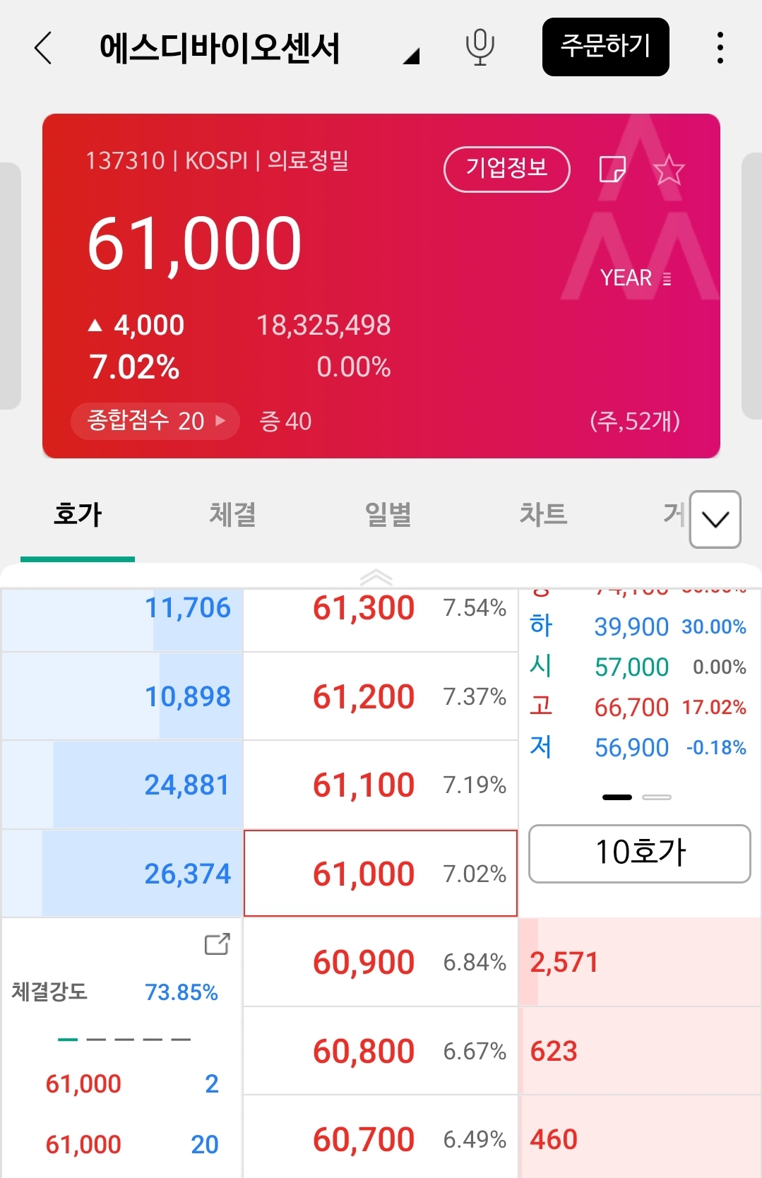 참고로 에스디바이오센서는 그날 61,000원으로 마무리했어요.