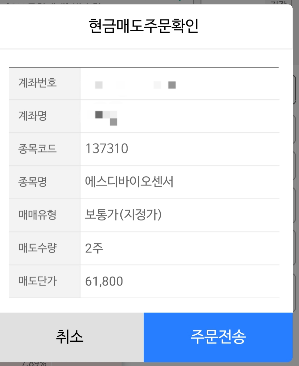 외람된 이야기지만 한국투자 증권 앱의 경우 매도와 매수를 혼동하지 않도록