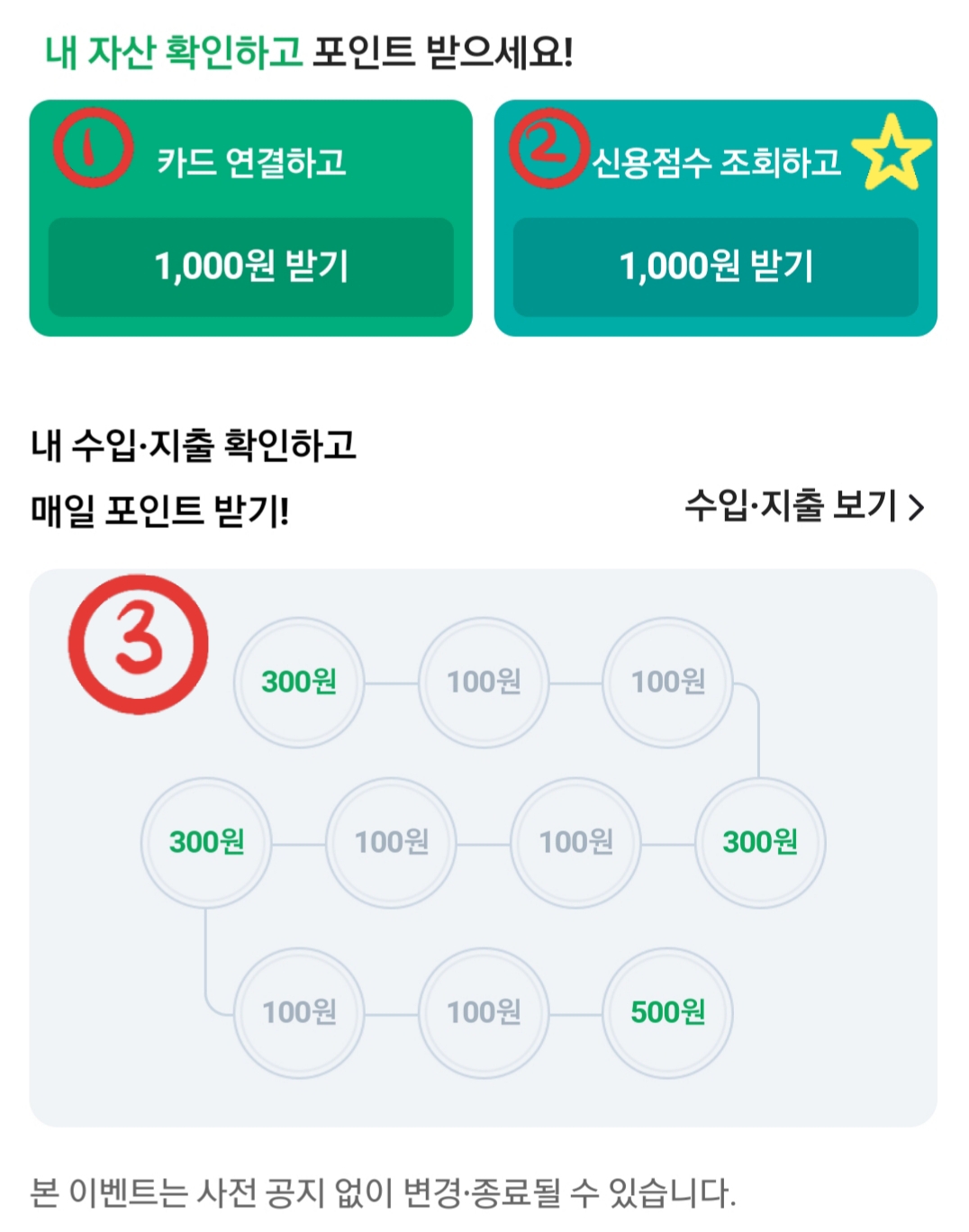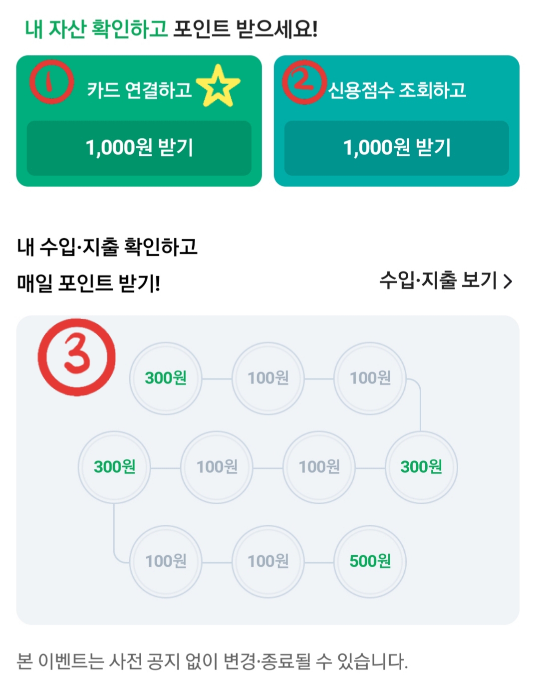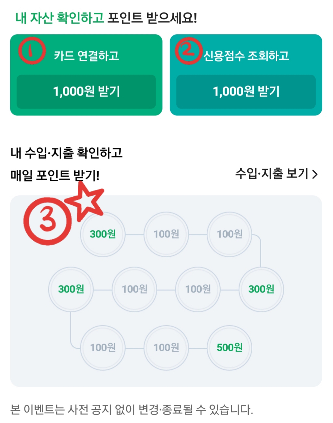 3. 매일 수입˙지출 확인하고 포인트 받기