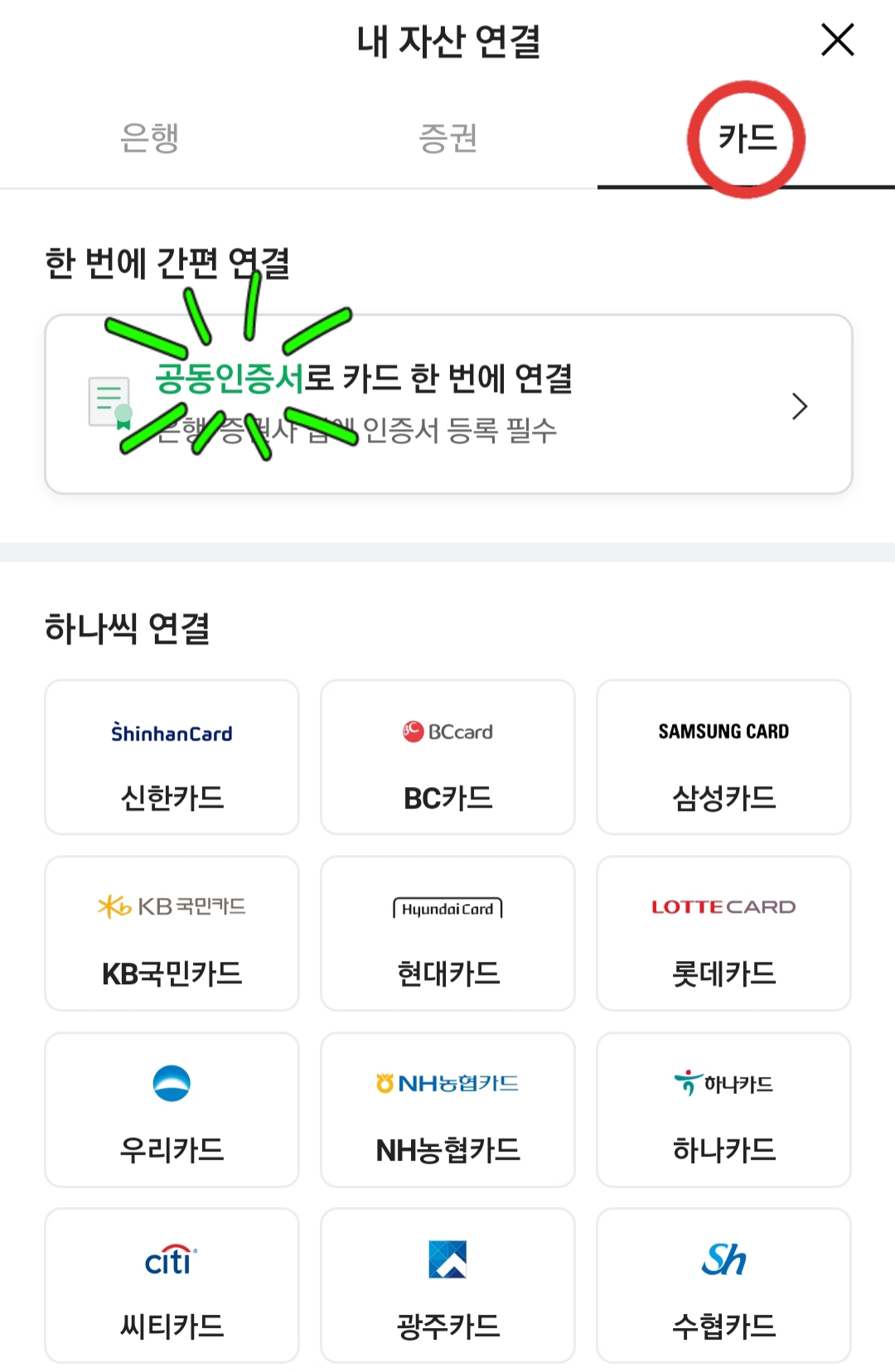 비교적 쉽게 연결 가능한 신용카드를 찾아서 연결할 수 있어요.