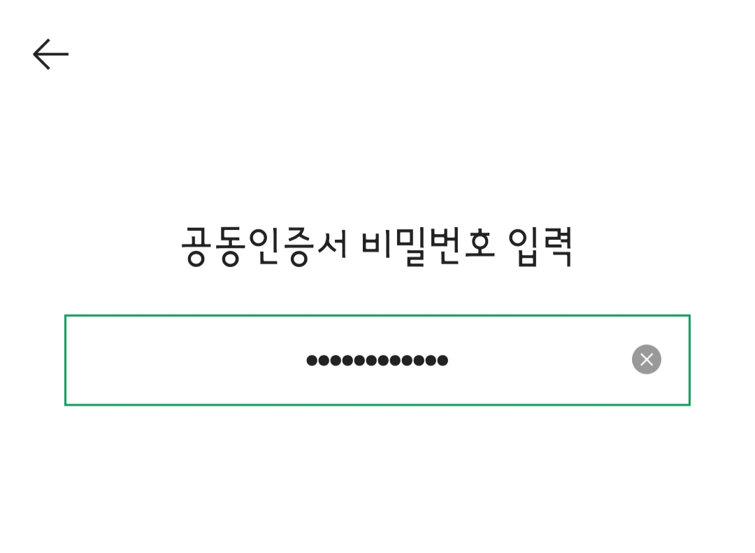 공동인증서 비밀번호와 주민등록번호를 입력하면