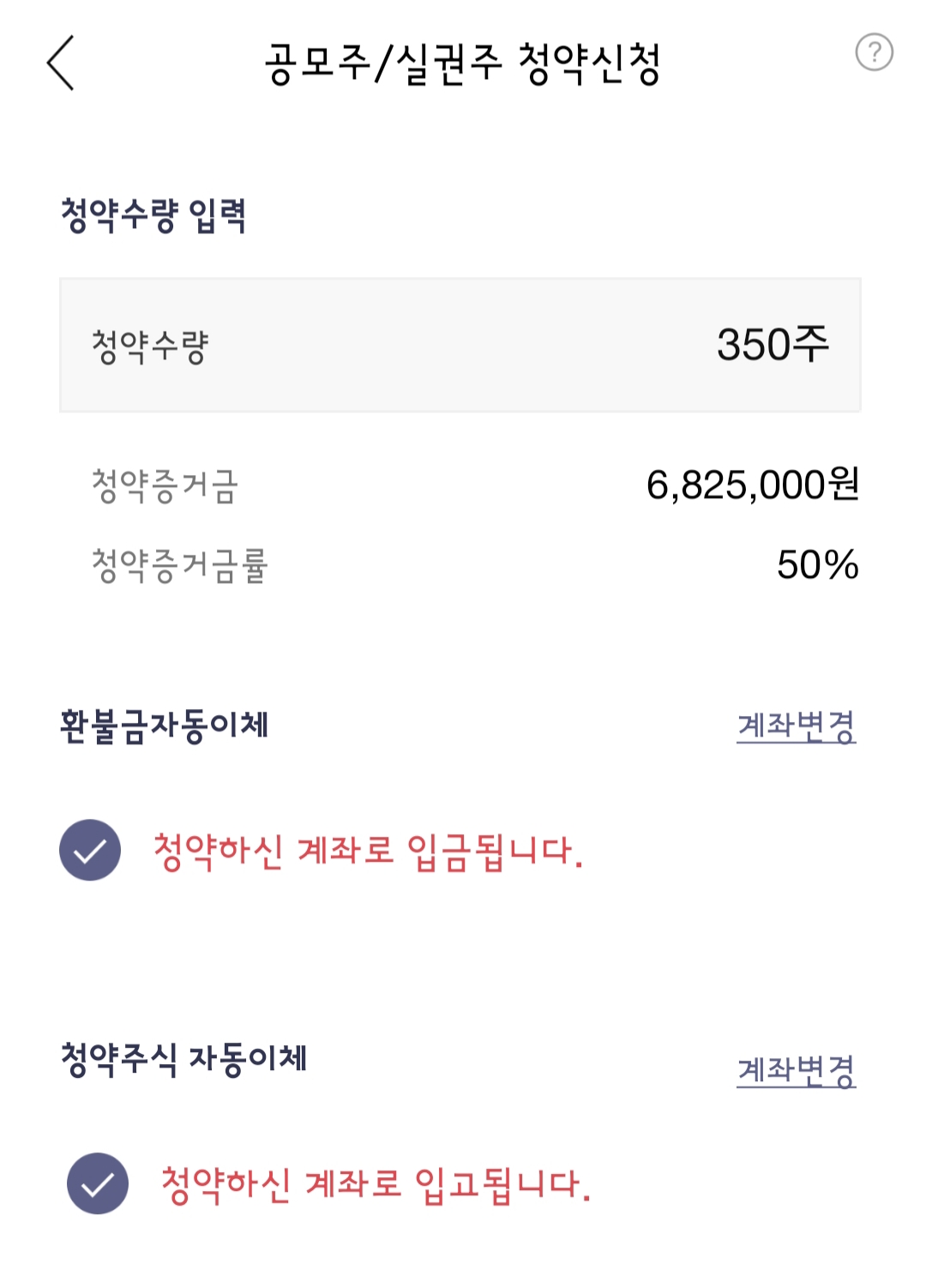청약수량은 350주로 350주*39,000원=13,650,000원에 50%인 6,825,000원이 증거금으로 지출됐어요.