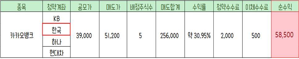 카카오뱅크의 청약 주관사는 KB, 한국, 하나, 현대차증권 이렇게 네 개였고
