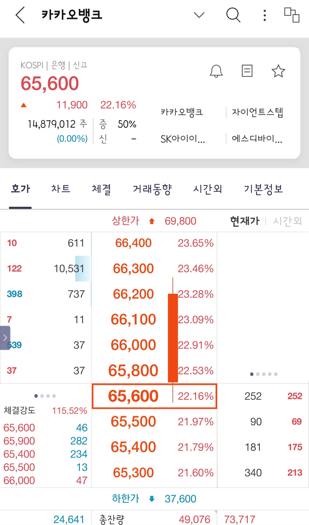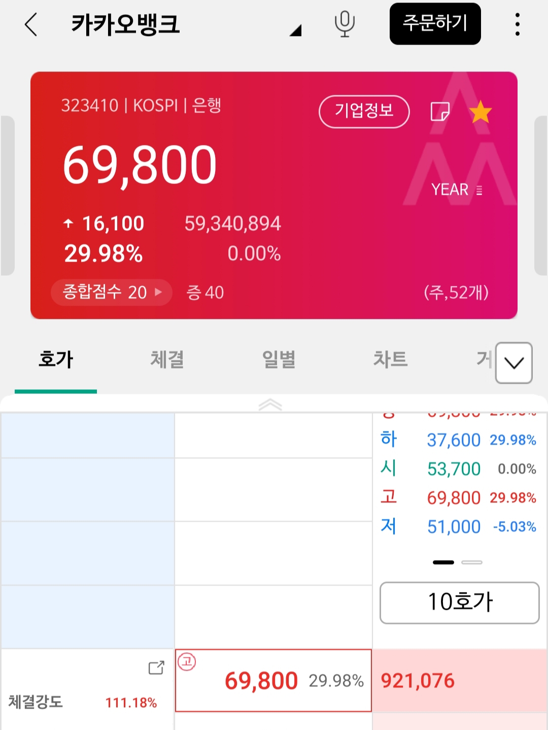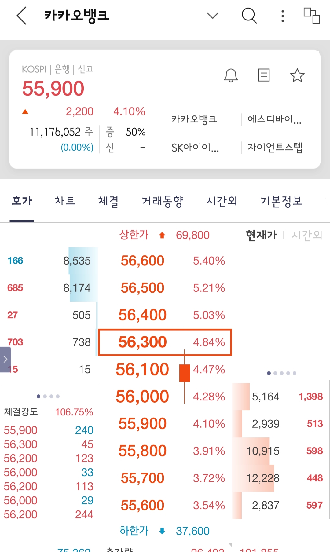 카카오뱅크는 그날 69,800원으로 마무리했어요.
