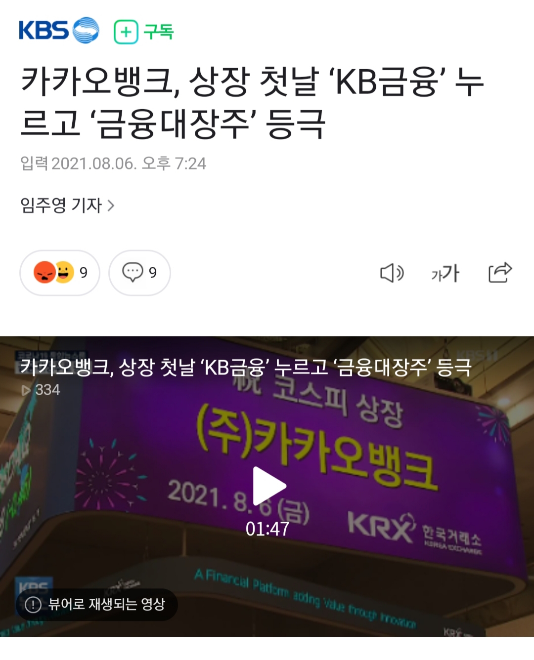 지난 금요일(8월 6일)에 드디어 카카오뱅크가 상장을 했는데요.카카오뱅크 주가가 고평가 되었다는 우려가 있어서시작가(39,000원) 아래로 내려갈 수 도 있다는 말이 들리더라고요.