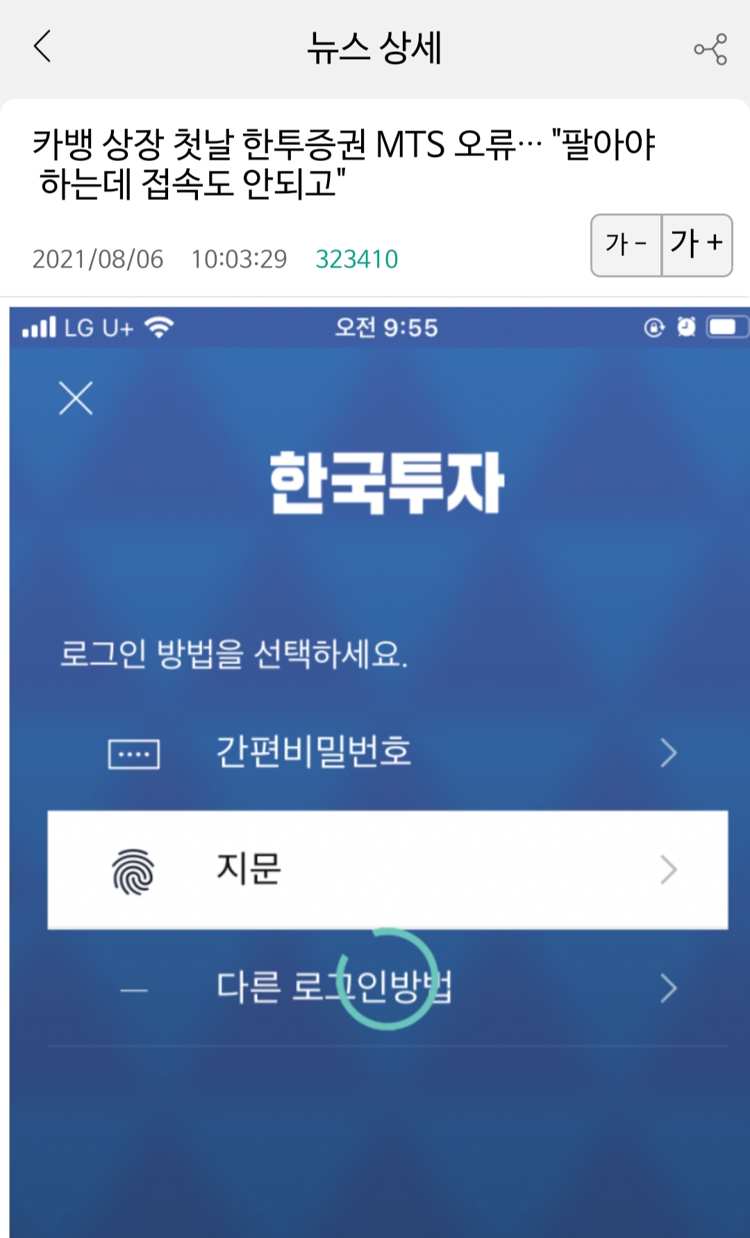 그날은 한국투자증권이 한동안 로그인조차 안돼서 신랑은 팔지도 못하고 있었어요.