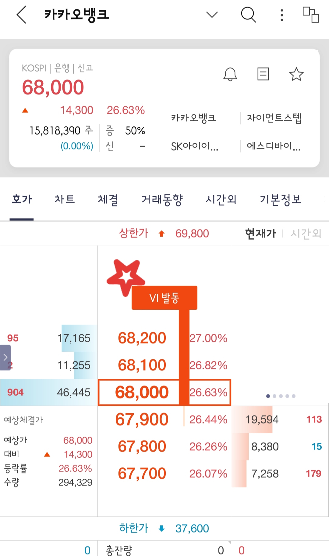 VI가 발동되면 2분간은 직전 가격으로만 체결된다고 해요.