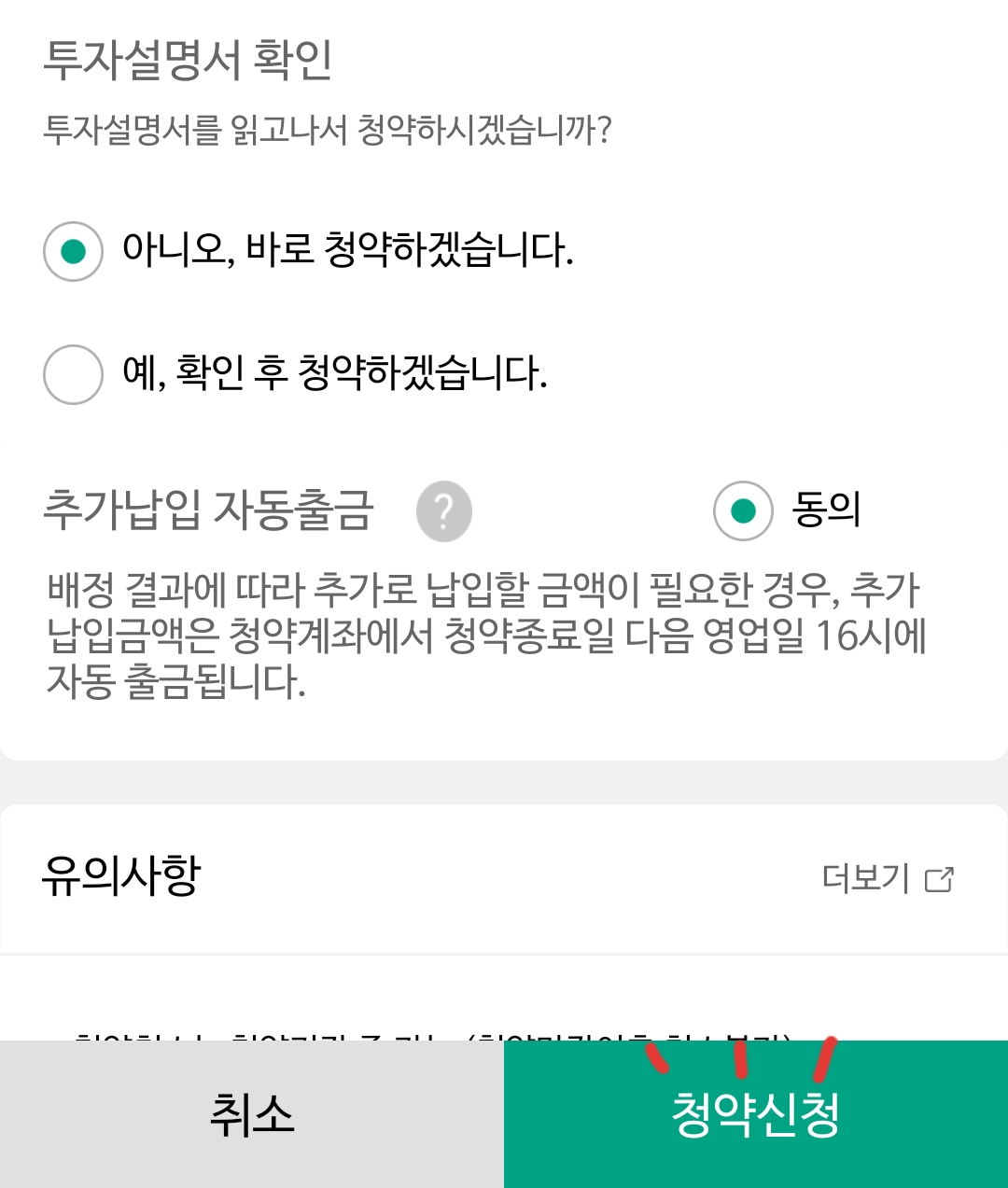 ③ 청약하는 날 경쟁률이 너무 저조할 경우 다시 한번 생각해 보자.