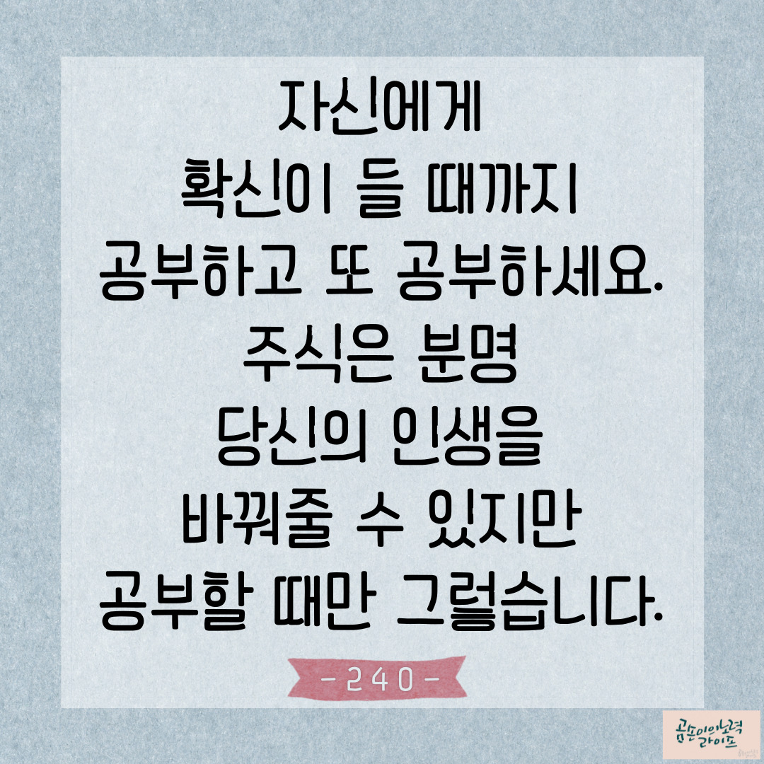 본업도 열심히 하면서 주식공부도 게을리하지 않는 열정을 가지라는 거죠.