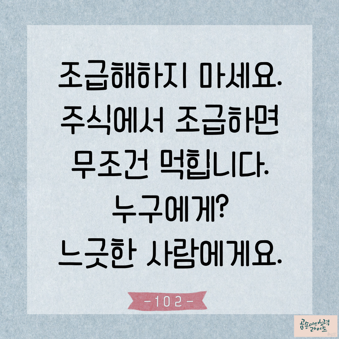 공부를 많이 해서 그 종목에 대해 잘 안다면 조급함을 가질 필요가 없죠.