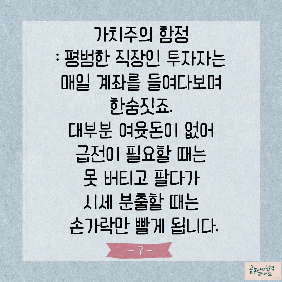 저도 주식투자를 작게 하지만 조금만 손실이 나면 미칠 것 같은 불안감에 시달려요.