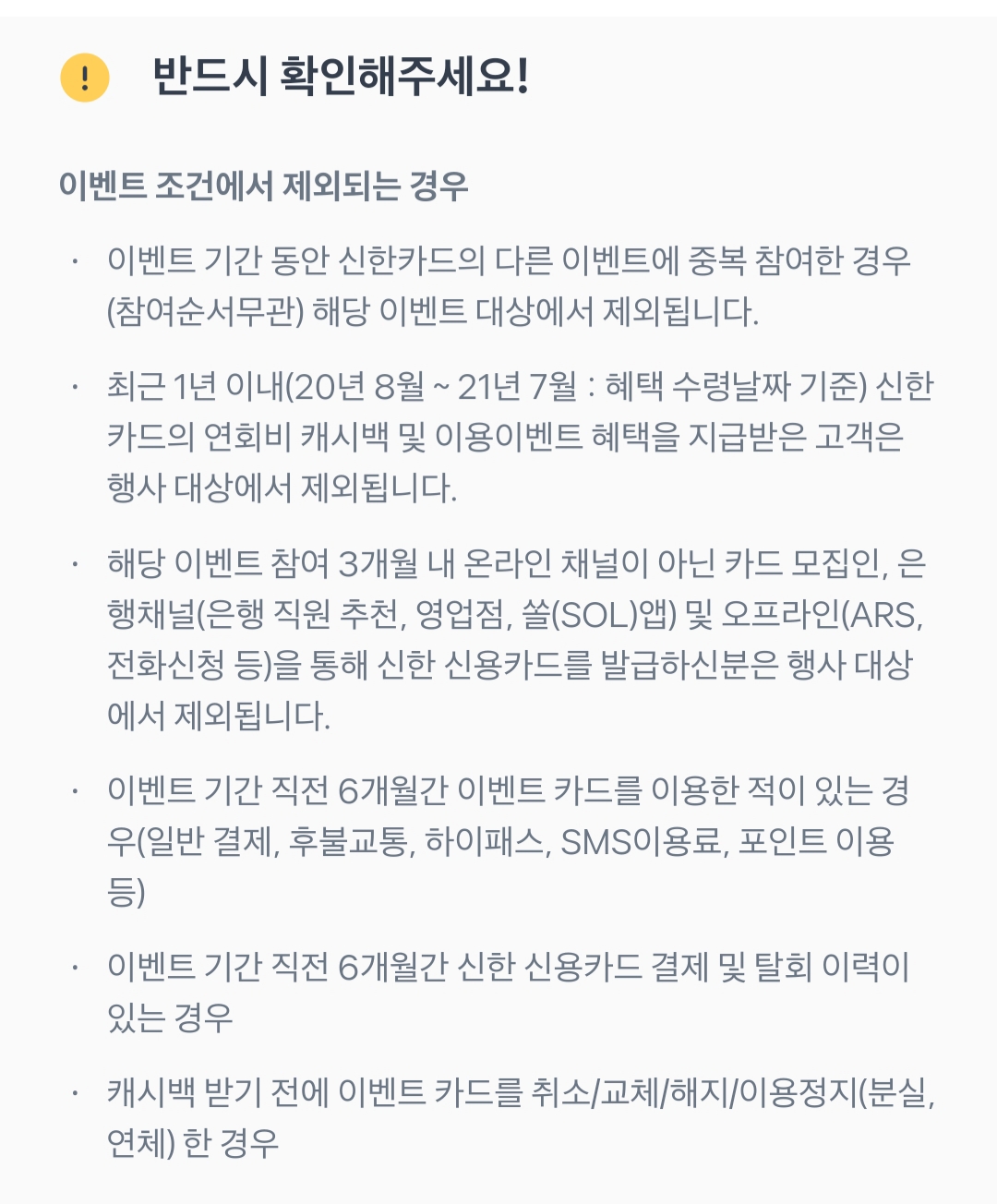최근 6개월 안에 신한카드를 사용한 적이 있다면 참여할 수가 없다는 것 확인해 주세요.