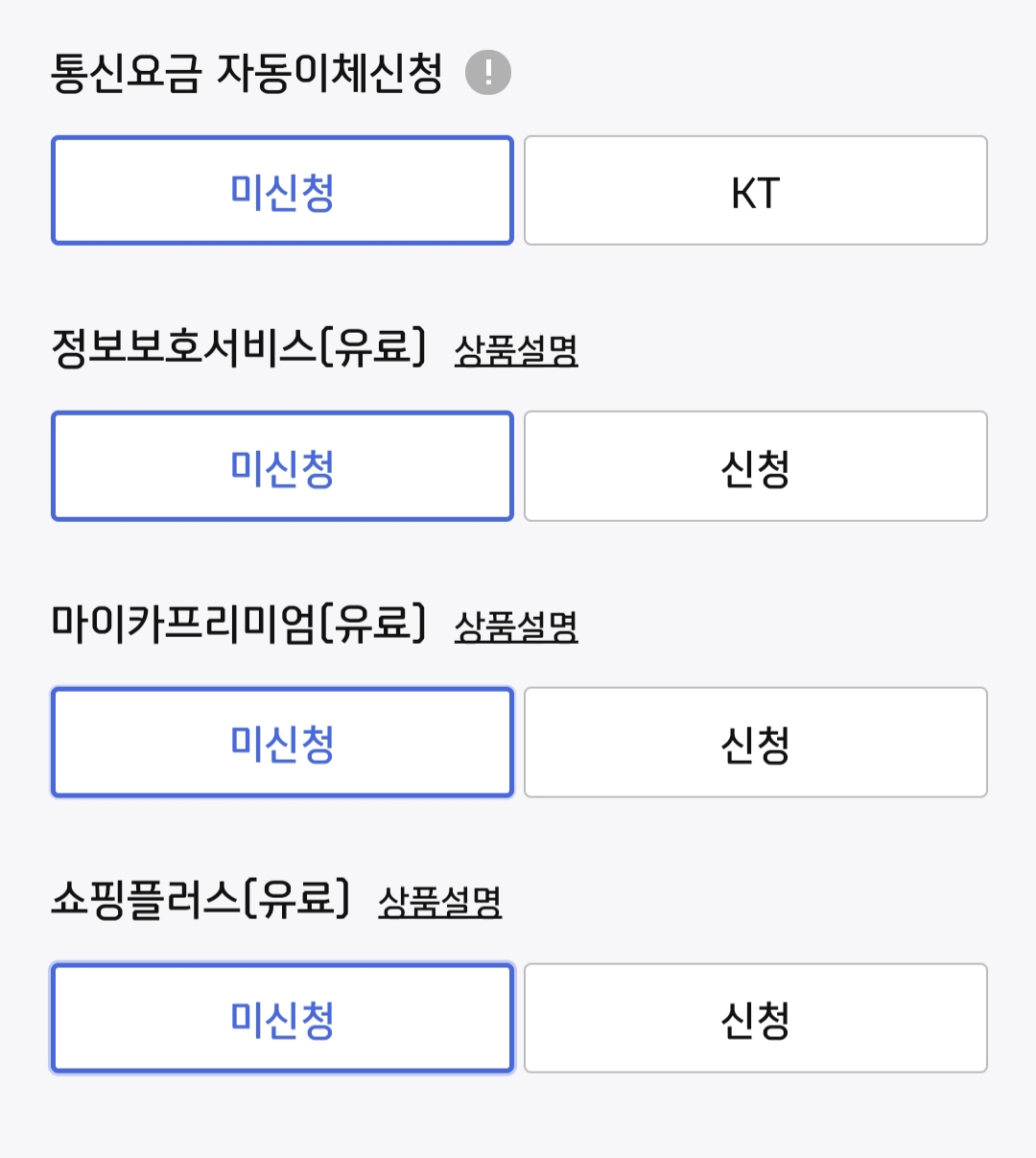 또, 리볼빙 결제방식은 꼭 미신청으로 해 주시고요.