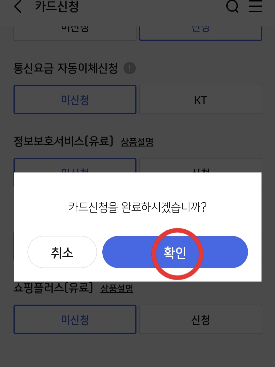 저는 가장 위에 있는 신한카드로 선택했습니다.
