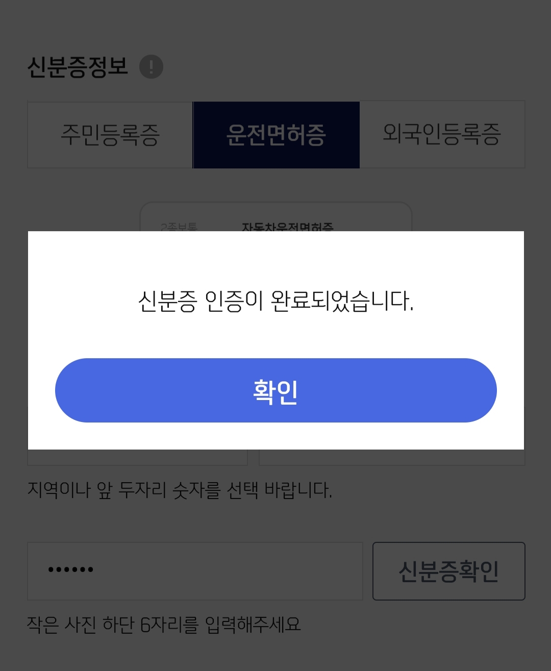 미리 준비한 신분증의 핵심 정보를 입력합니다.