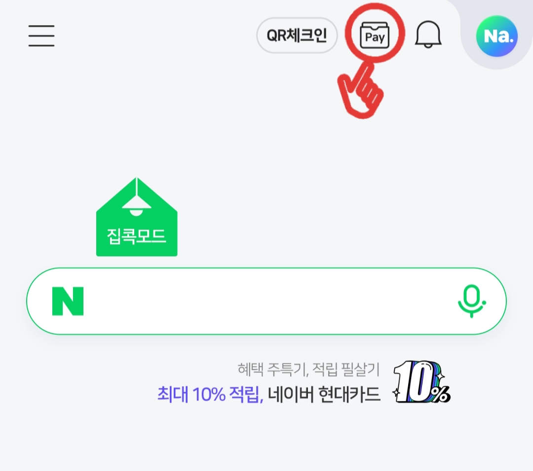 네이버 기본 화면 위쪽에 작은 N페이 아이콘을 눌러보세요.