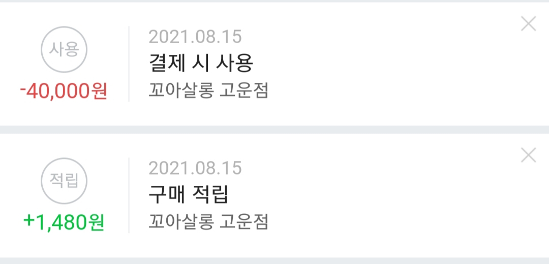 얼마 전에 미용실에서 포인트를 다 사용했는데도