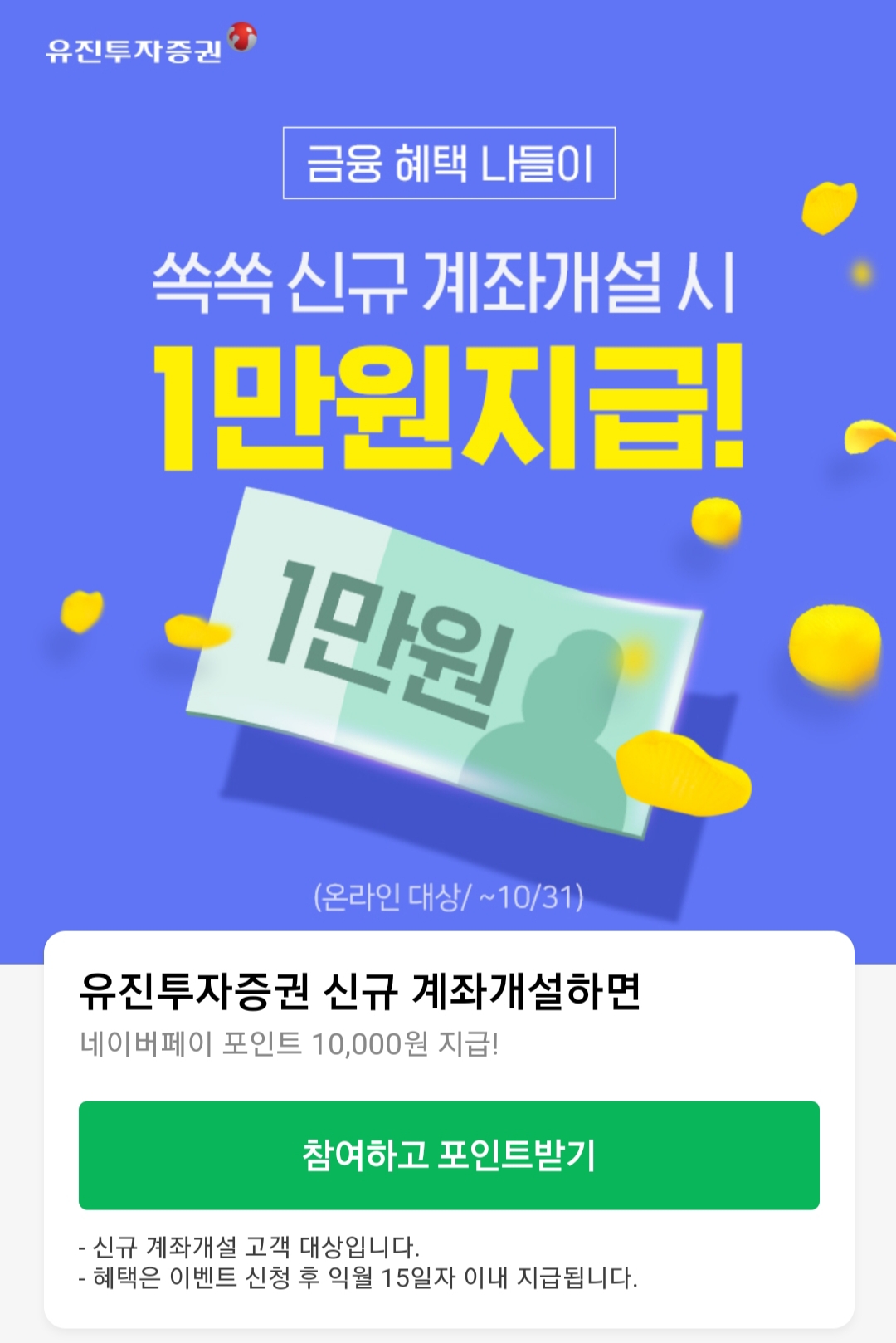 저는 최근에 유진투자증권 계좌를 개설하고 만원의 N포인트를 받았어요.
