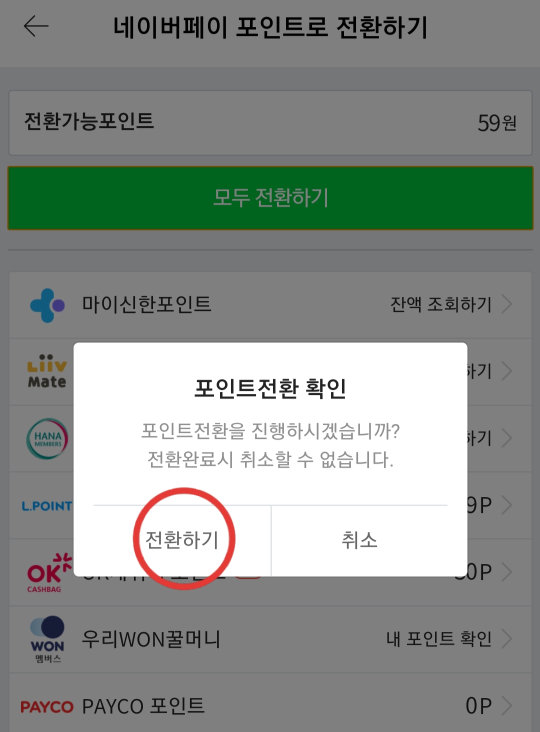 내 N포인트 아래칸의 중간 부분에 전환이라는 버튼을 클릭해 보세요.