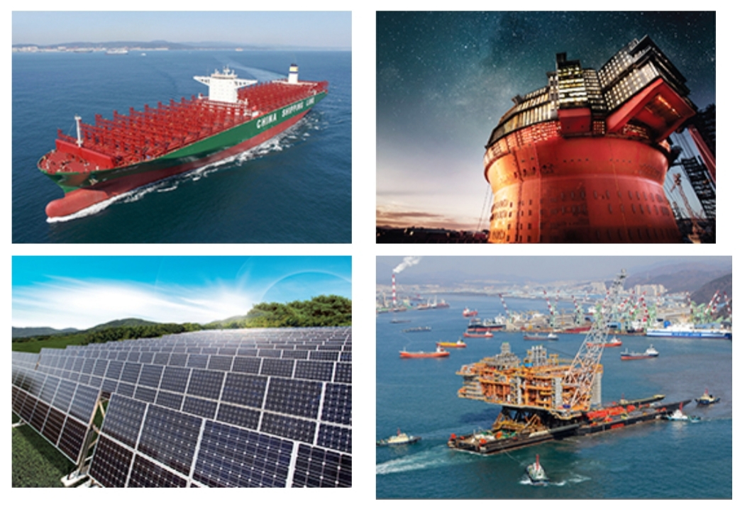 사업분야로는 조선해양, 특수선, 엔진기계, 연구개발 이렇게 네 분야로 활발히 사업을 전개하고 있습니다.