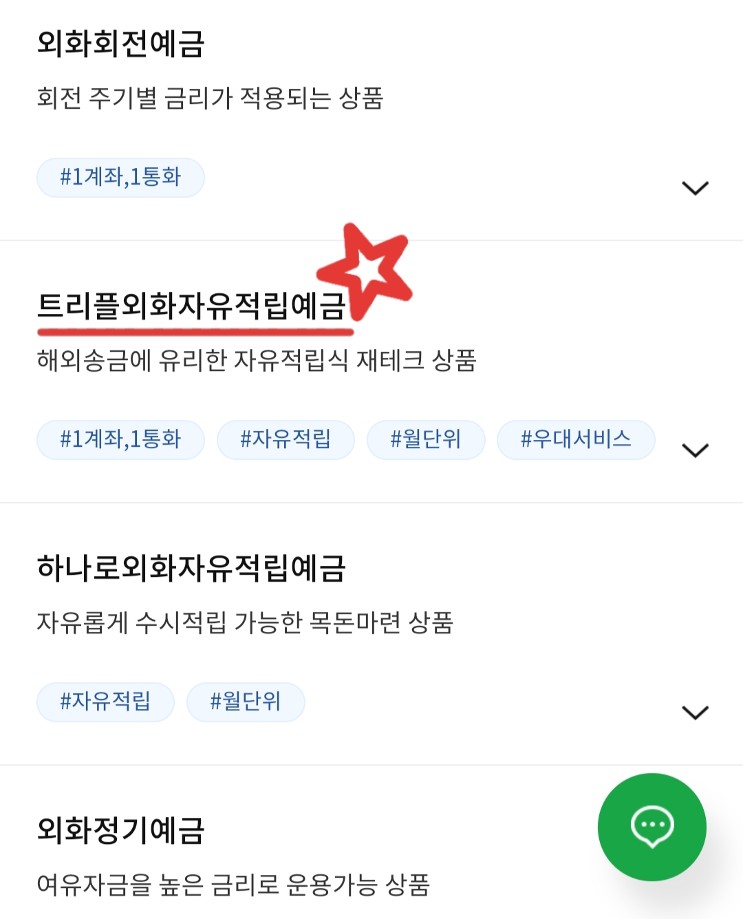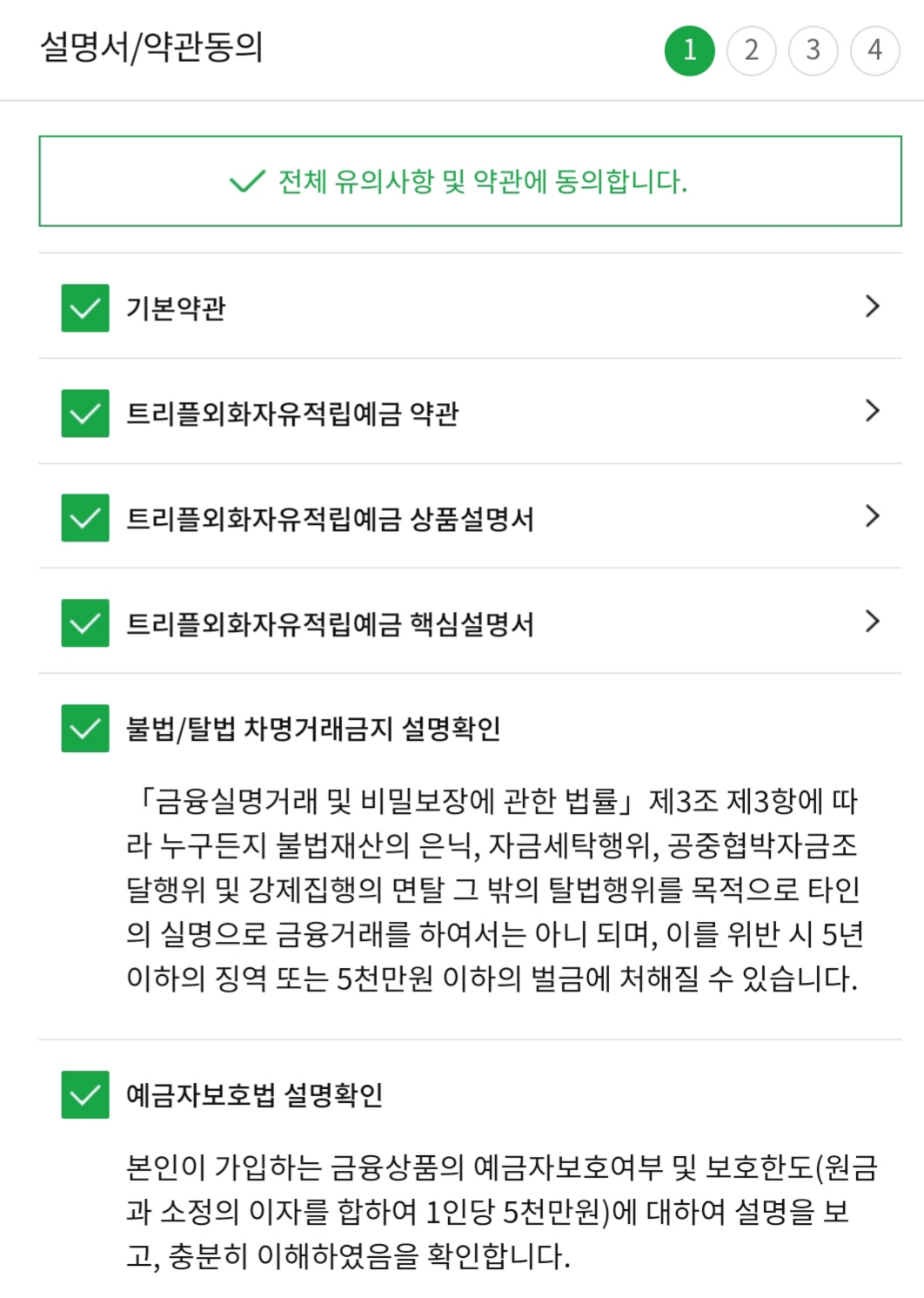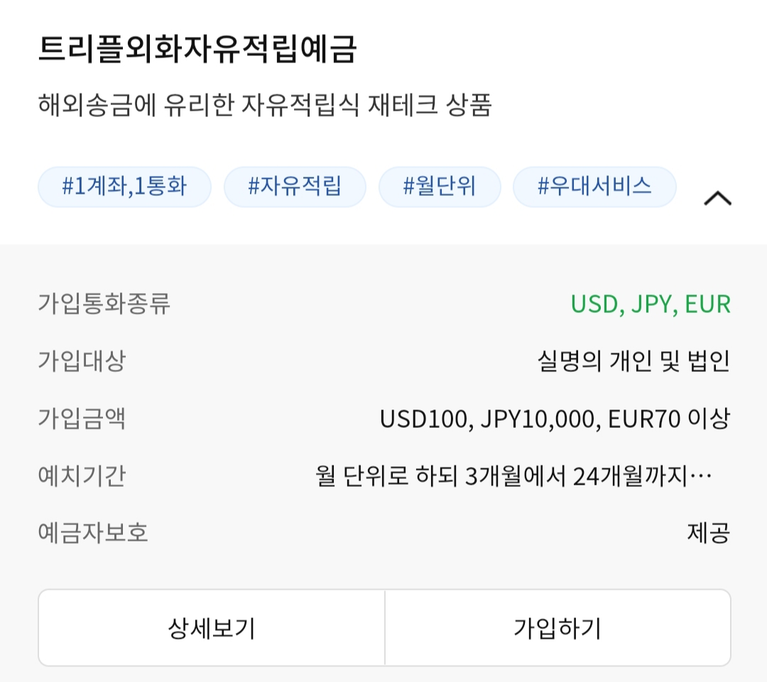 이중에 트리플 외화 자유 적립 예금으로 선택했어요.