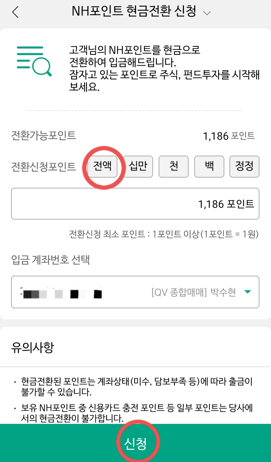 NH통합 포인트를 예수금으로 전환해주는 기능이 있어 알려드리려 합니다.