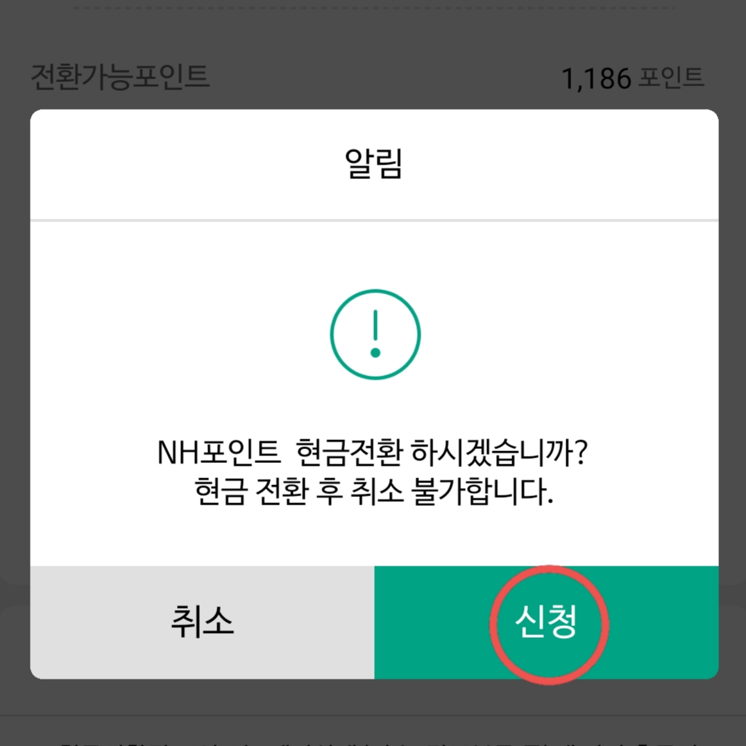 앞에 포인트 전환 창에서 NH포인트 현금 전환 내역 조회를 통해서도 확인할 수 있고요.
