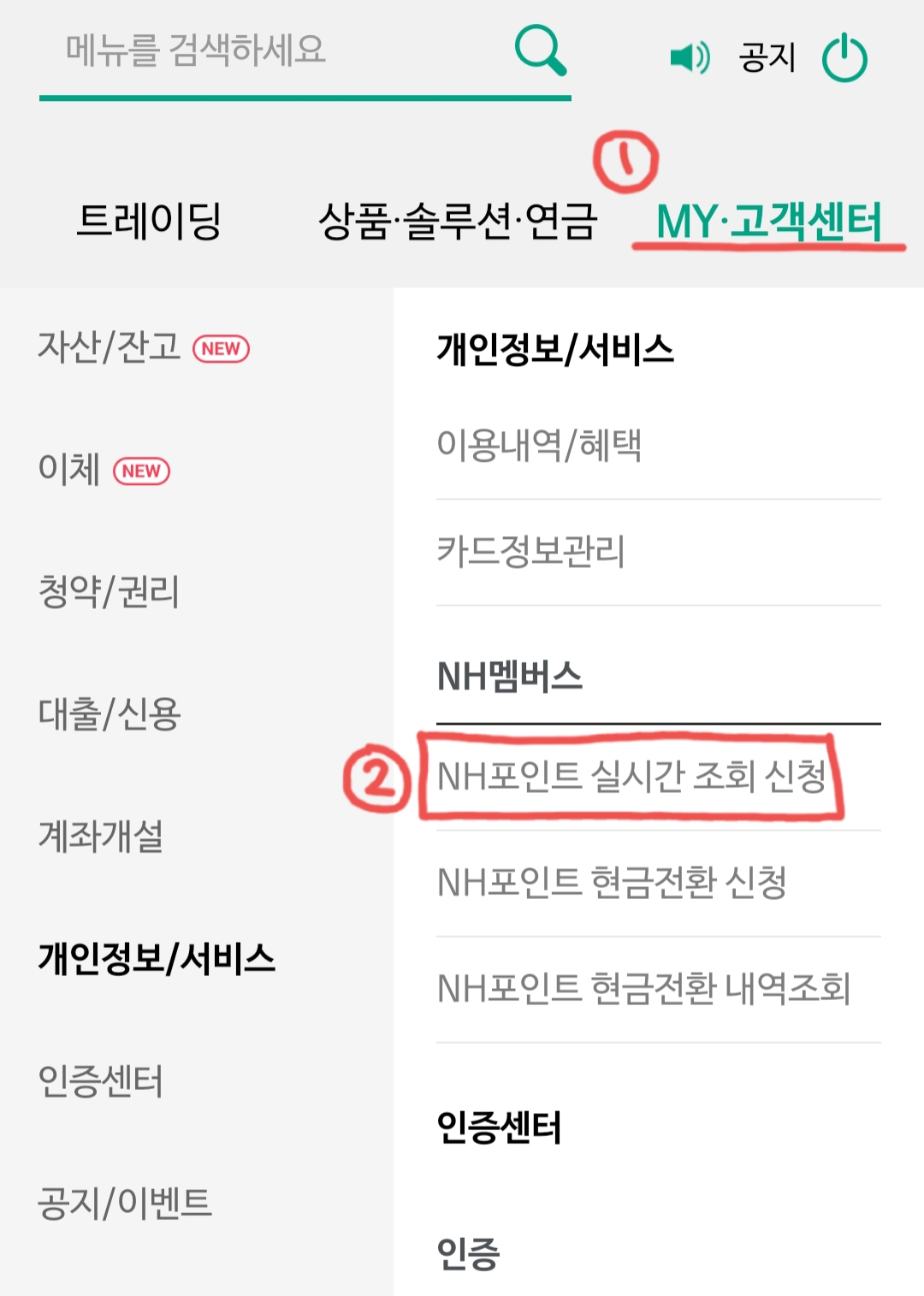 MY·고객센터 - NH멤버스 메뉴를 찾아주세요.