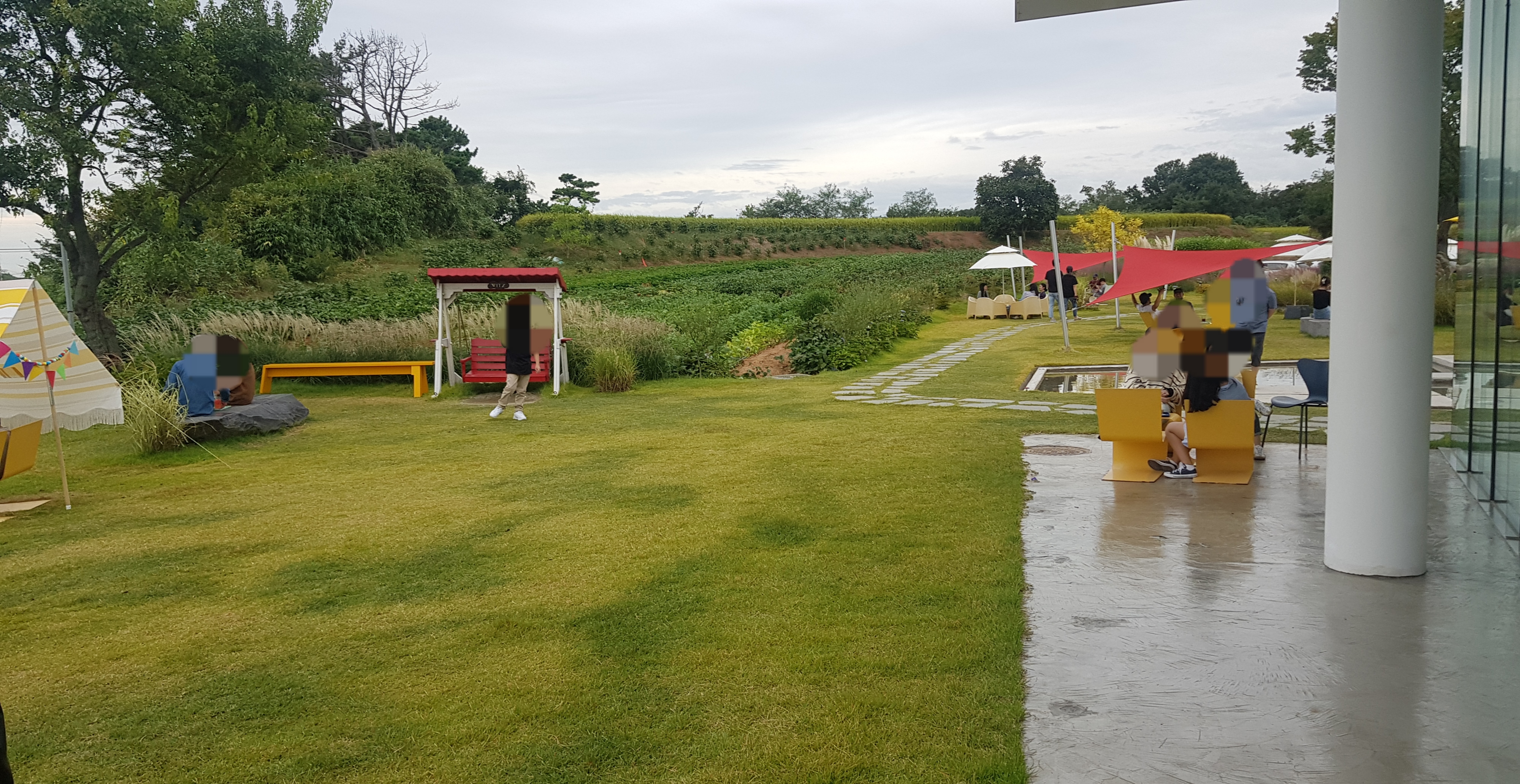 잘 정돈된 초록 잔디와 바다를 동시에 볼 수 있어 답답한 가슴이 탁 트이는 기분입니다.