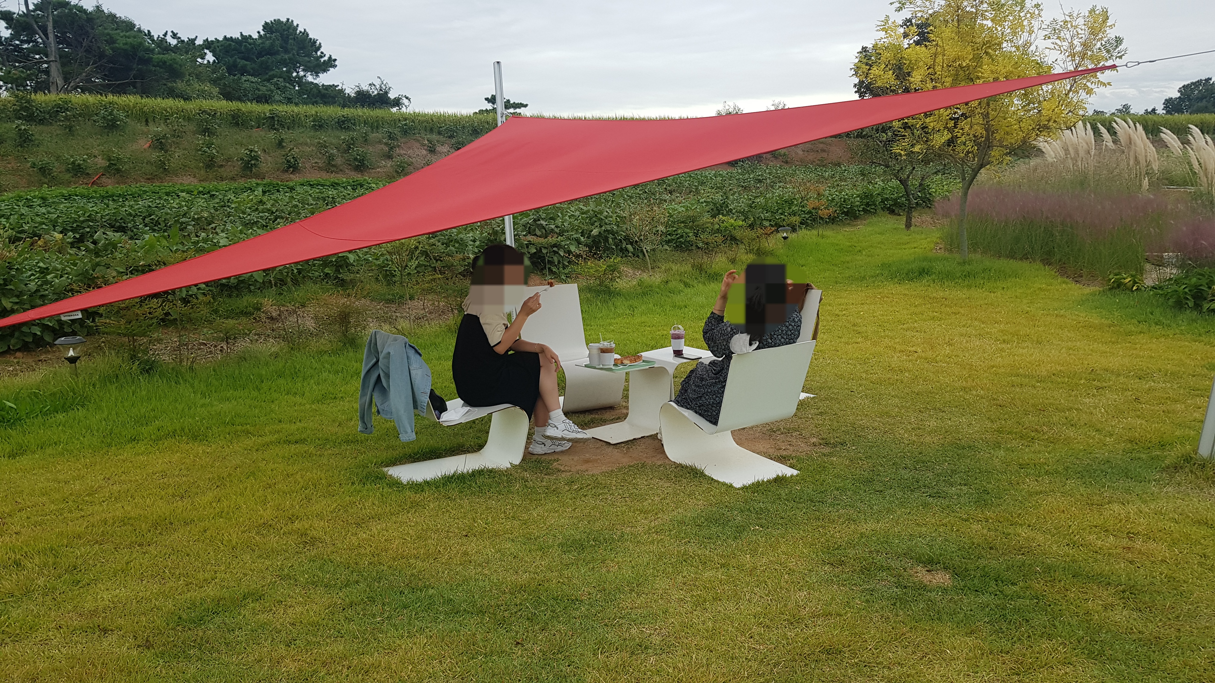 그날은 바람이 시원하게 불어서 바깥에 자리를 잡고 앉았어요.