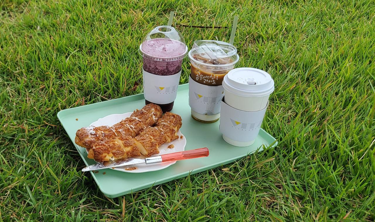 초록 초록한 잔디 위에서 커피 마시니 너무나 여유롭고 조으다❤