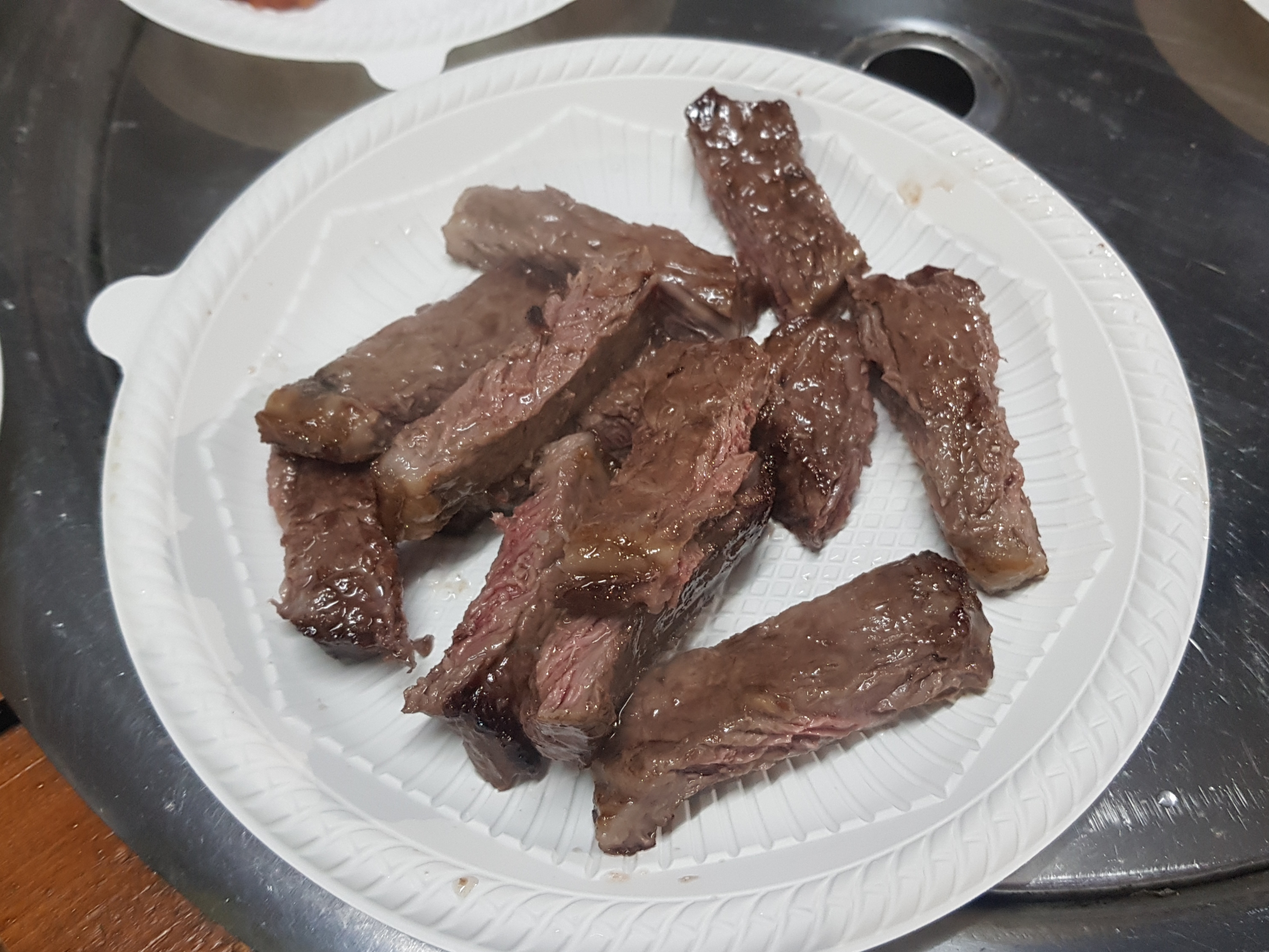 비 내리는 풍경을 보며 먹는 고기는 넘나 운치 있고 맛있었어요.