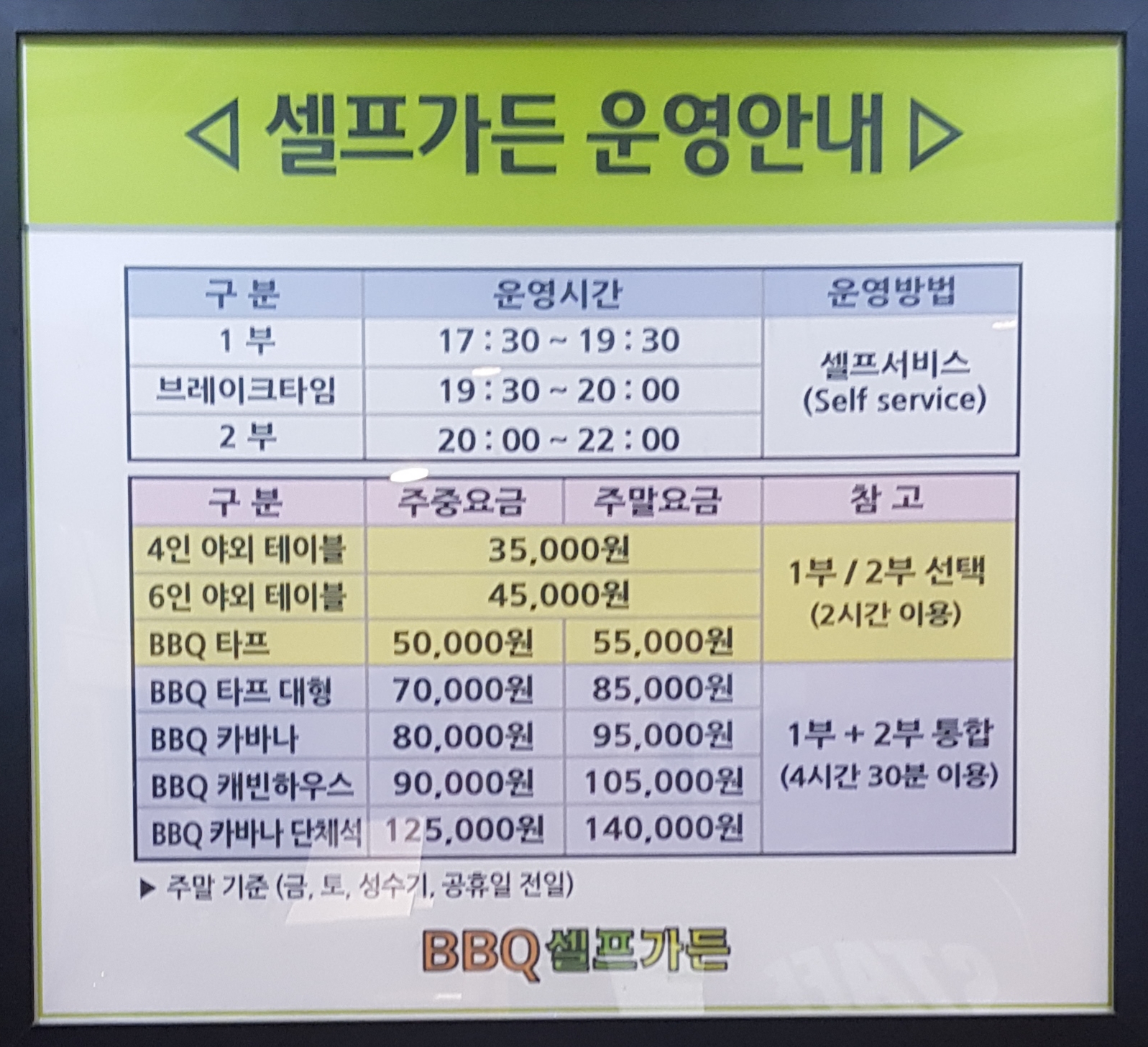❤ 이용금액 : BBQ타프 기준(주말) 55,000원