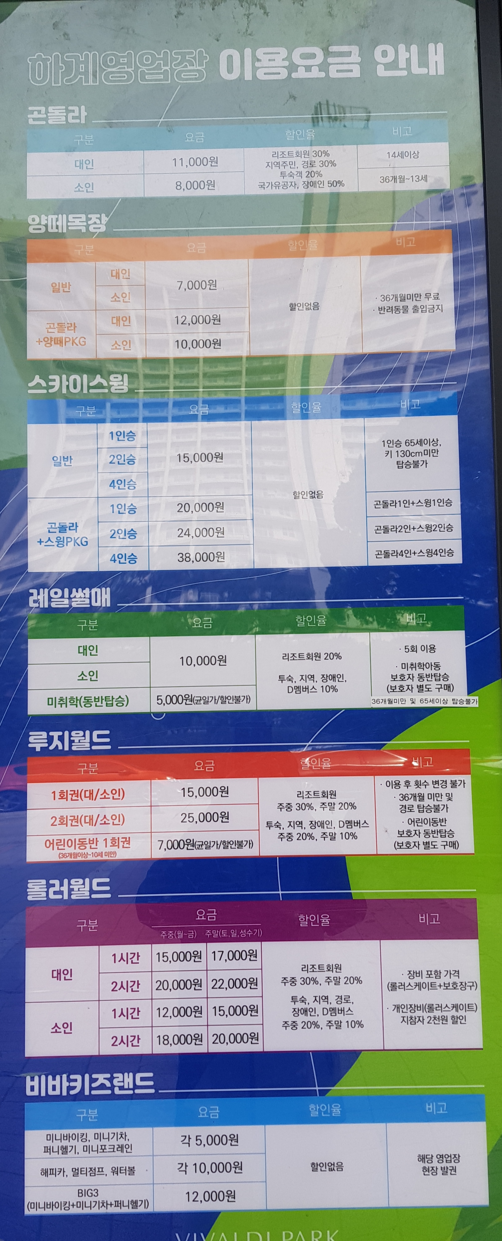 아직 스키장은 개장하지 않았지만 곤돌라, 레일썰매, 루지 등