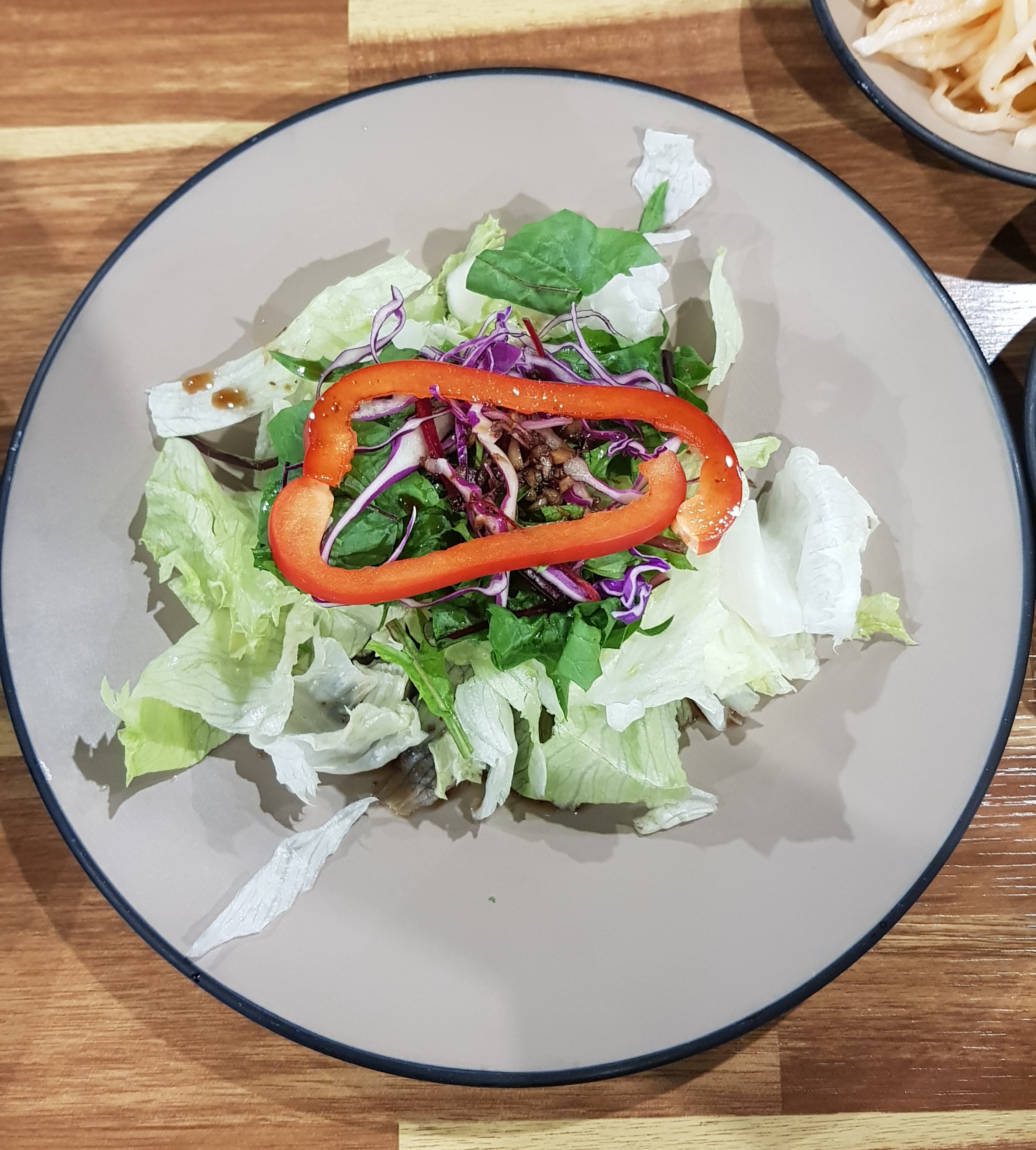 샐러드와 메밀전이 나왔어요.샐러드는 푸짐하지는 않지만 상큼하니 입맛을 돋우네요.메밀전도 고소하고 맛있습니다.게눈 감추듯 다 먹어버려서 더 먹고 싶었어요😥